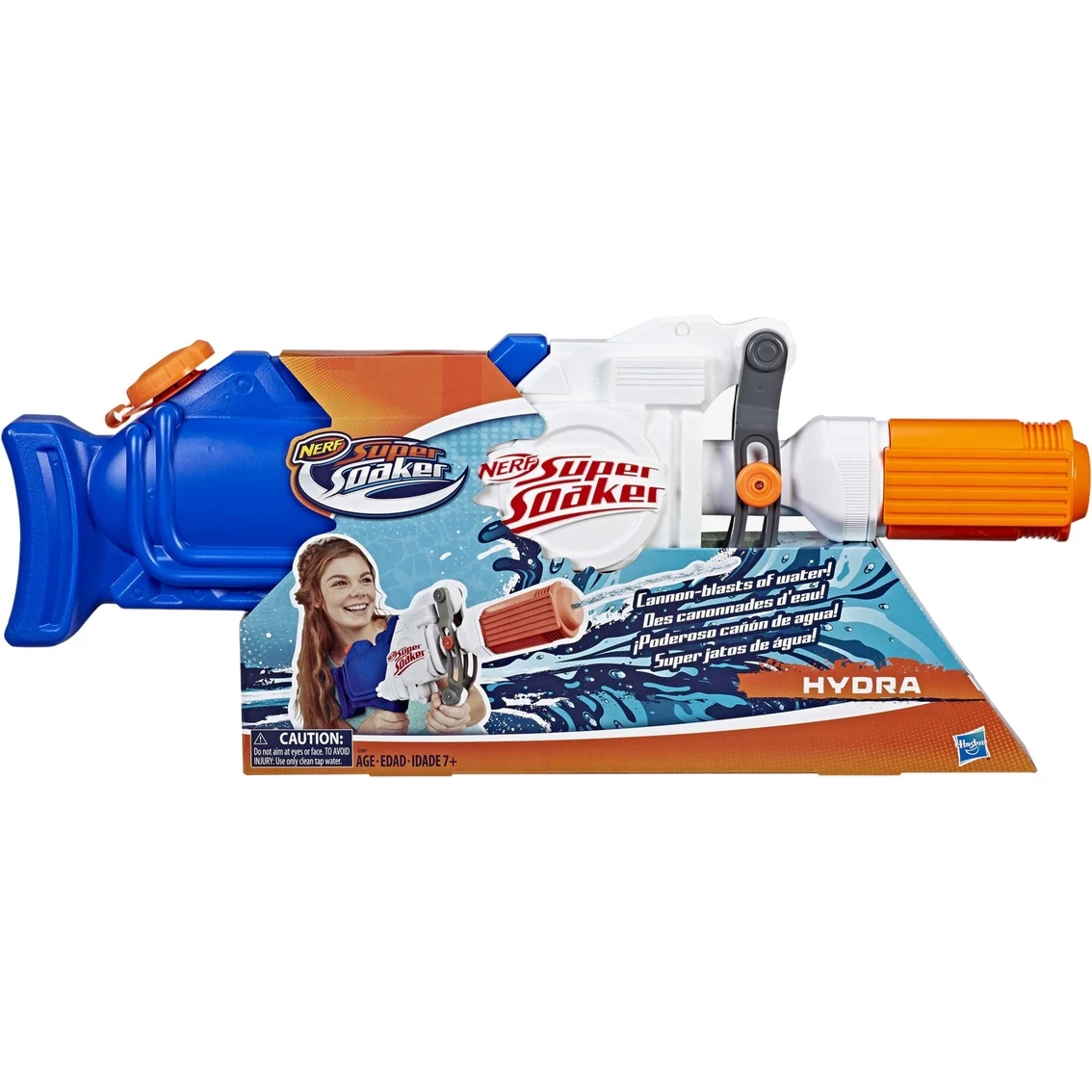 Drench targets with cannon-blasts of water from the Super Soaker Hydra water blaster by American Plastic Toys! This monster means business with its intimidating size and a tank that holds up to 65 fl. oz. (1.9 L). Move the handle back and forth to pour on powerful streams of water from this blue and white blaster. Deliver a decisive deluge at the next Super Soaker battle with the Hydra water blaster! Copyright Larami Ltd. Nerf Super Soaker and all related properties are trademarks of Hasbro. Model: E2907.