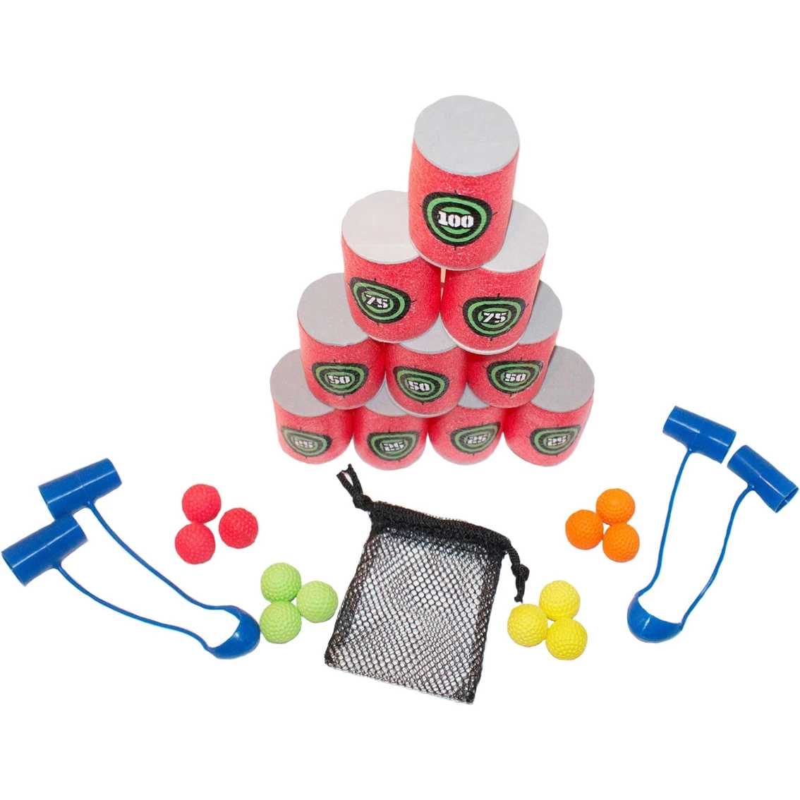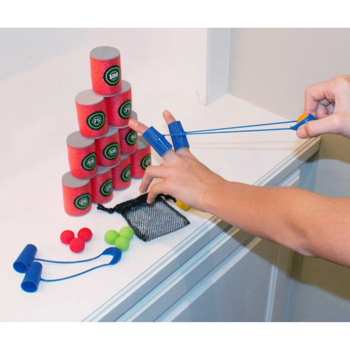 Finger Rocketz the newest game from Creative Brainworks. The makers of Bean Bag Bucketz. This is a classical game with a unique twist that will bring hours of fun anywhere you are ready to try your luck at knocking down the cans. This portable game of fun can be played indoor or outdoors. How to play simply set up the cans into a pyramid. Place the Finger Rocketz tabs on your index and middle finger. Place a foam ball in the Rocket – Pocket, Point your hand toward the cans, separate your fingers while pulling back the Rocket – Pocket and release launching the foam ball toward to target. Awesome fun that will be repeated many times. The fun is contagious everyone will want to try this non stop action fun launching game. Kids, teens, and adults will want a chance to try their skill. Specially designed Finger Launchers for non stop fun. Soft foam balls to launch at targets for fun competition. 2 Finger Rocketz Launchers, 10 numbered foam can targets, 12 foam balls, 1 carry bag. Model: G683405395461.