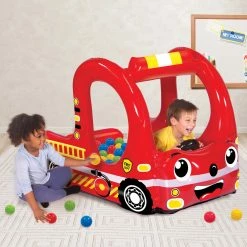 Calling all firefighters, The Fire Truck Play Center is ready for fun! This inflatable play center encourages role with with the fire engine graphics, while the included soft-touch balls help develop hand-eye coordination. It’s five-alarm fun!