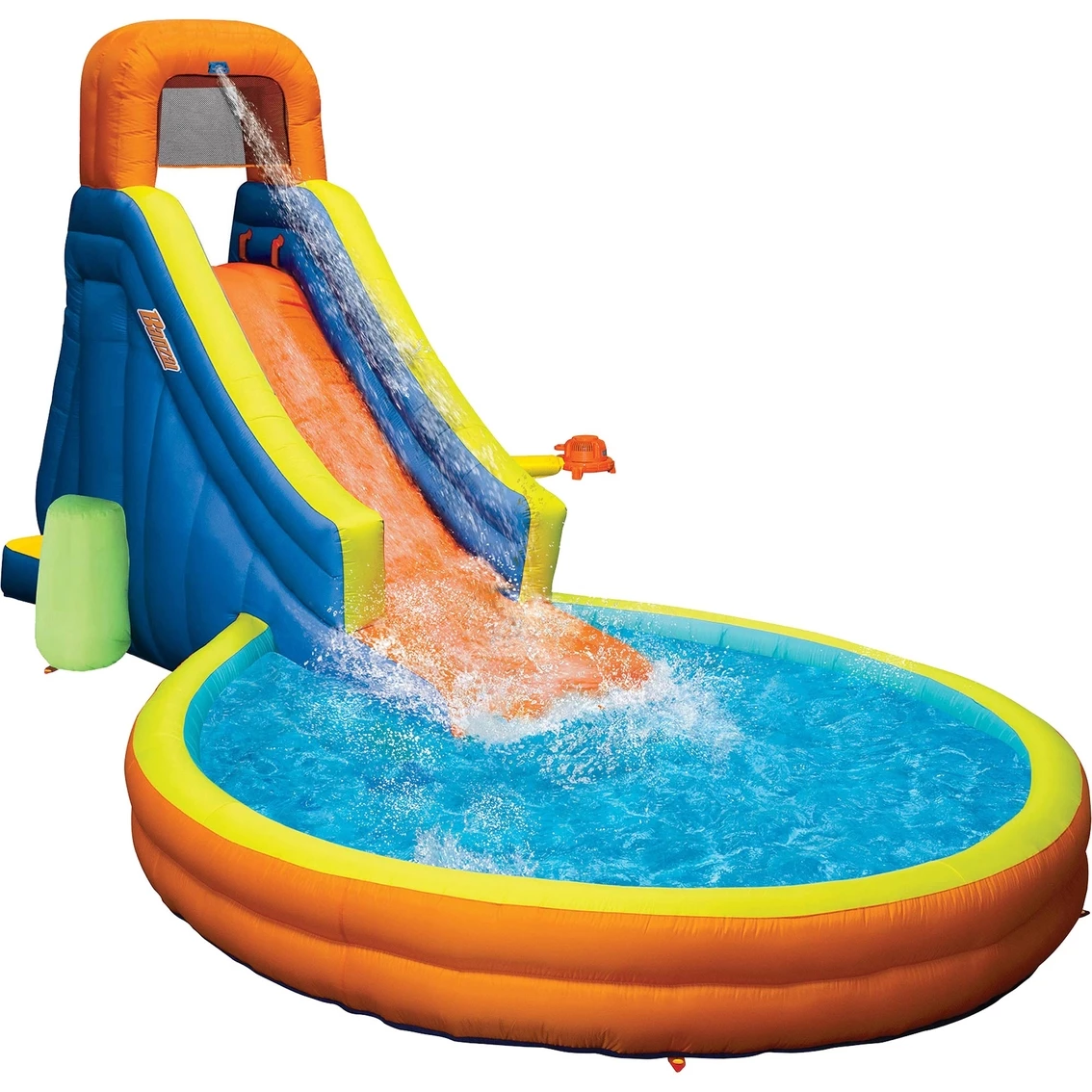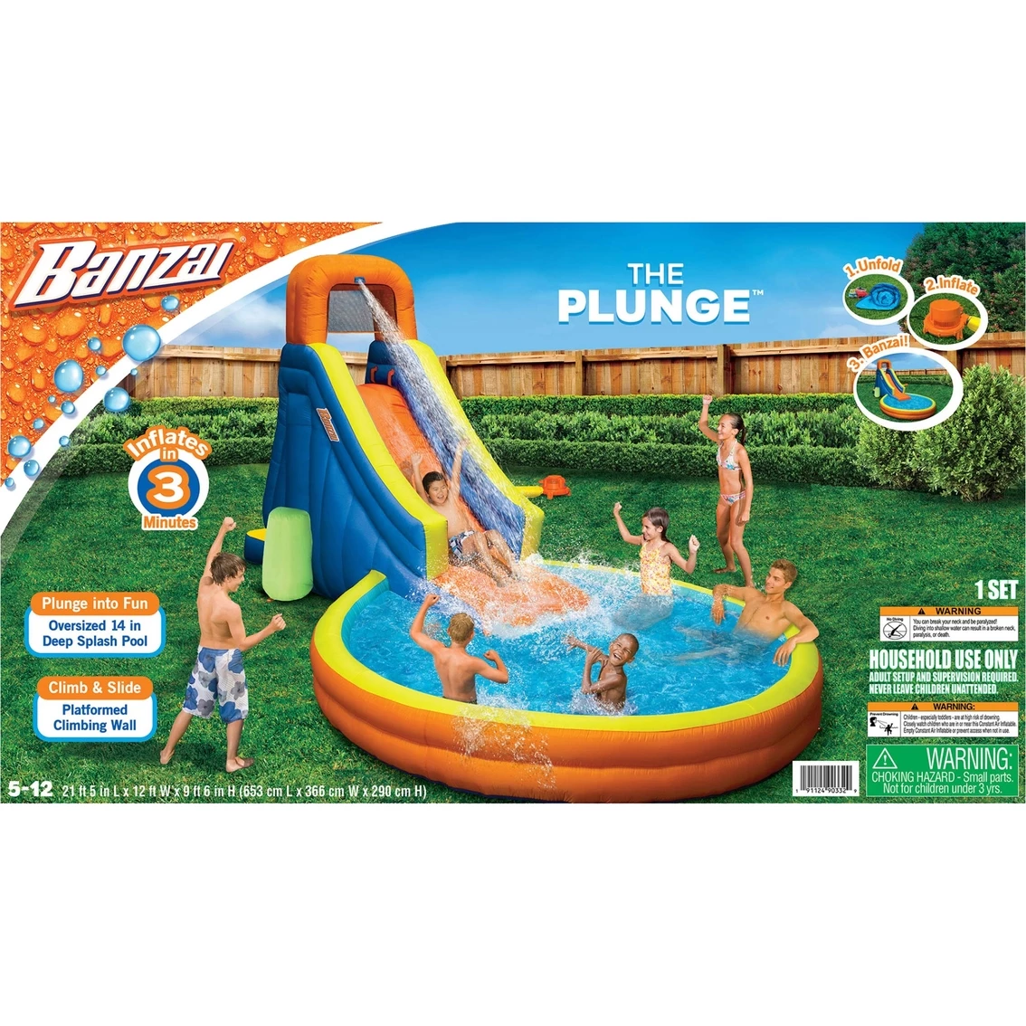 Take the Plunge into summer fun! Climb the platformed climbing wall and plunge down the slide into the oversized 14 in. deep splash pool.
