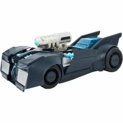 Take your Batman missions to the next level with the Tech Defender Batmobile! When there’s trouble in Gotham City, launch the Batmobile! Transform the Batmobile into battle mode by pushing the cockpit door down to reveal the blaster launcher! Pull the cockpit door back up to go into stealth mode.