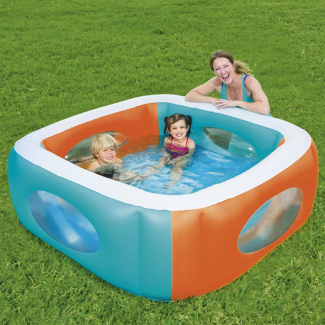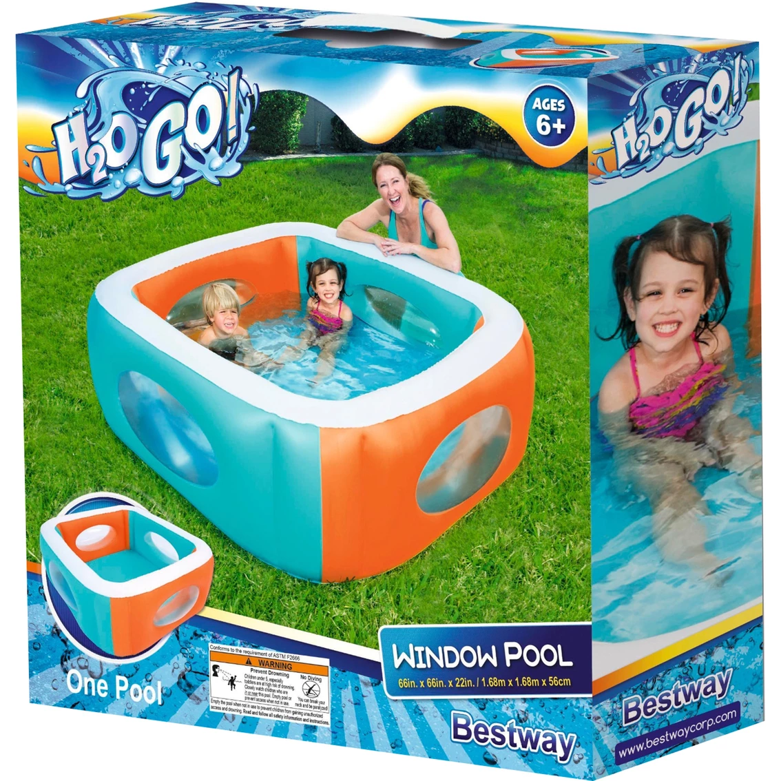 Designed to get kids moving, grooving and out of the house, the Bestway Window Pool puts the focus back on fun! This brightly colored pool has built-in inflatable windows so you can stay dry while watching your kids swim and splash to their hearts’ delight. The extra-wide side walls provide structural stability for a long-lasting pool. With an easy-to-use drain valve to release the pool water, storing the pool is stress-free at the end of the season. Splashing in the sun has never been more fun than with the Window Pool! Model: G0821808012138.