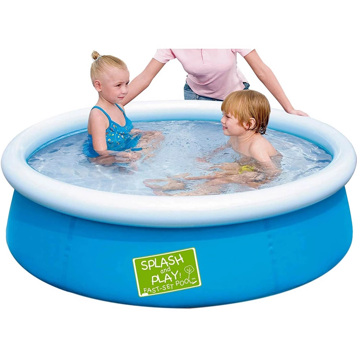 Bestway My First Fast Set Pool provides toddlers and young kids a way to acclimate to water, practice paddling and have fun splashing in the sunshine. The paddling pool’s simple set-up also makes it extremely practical for busy parents. You simply inflate the white upper ring before filling the base with water. As the outer shell of the inflatable paddling pool fills with water it broadens out and rises. Once the water has reached its capacity kids are free to clamber in the paddle pool and enjoy some super splashing fun! The shell of the children’s swimming pool is made of hardwearing PVC and polyester, ensuring many seasons of summertime fun. Dimensions – 5 foot x 15 inches. Water capacity at 80 percent capacity is 126 gallons. Suitable for ages 3 years old and up with adult supervision. Includes a heavy duty repair patch. – blue. Model: G0821808012282.