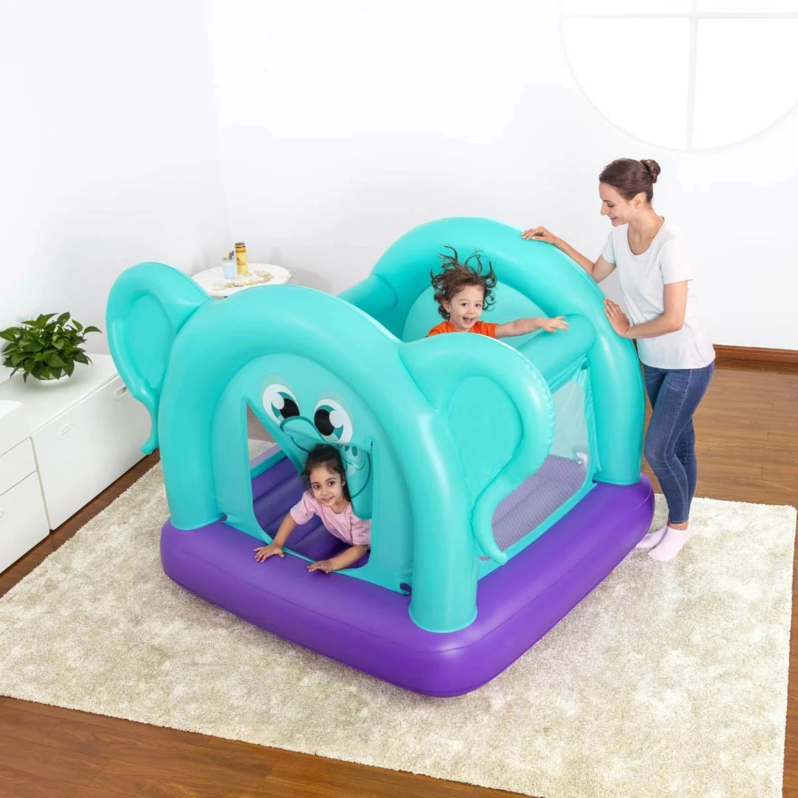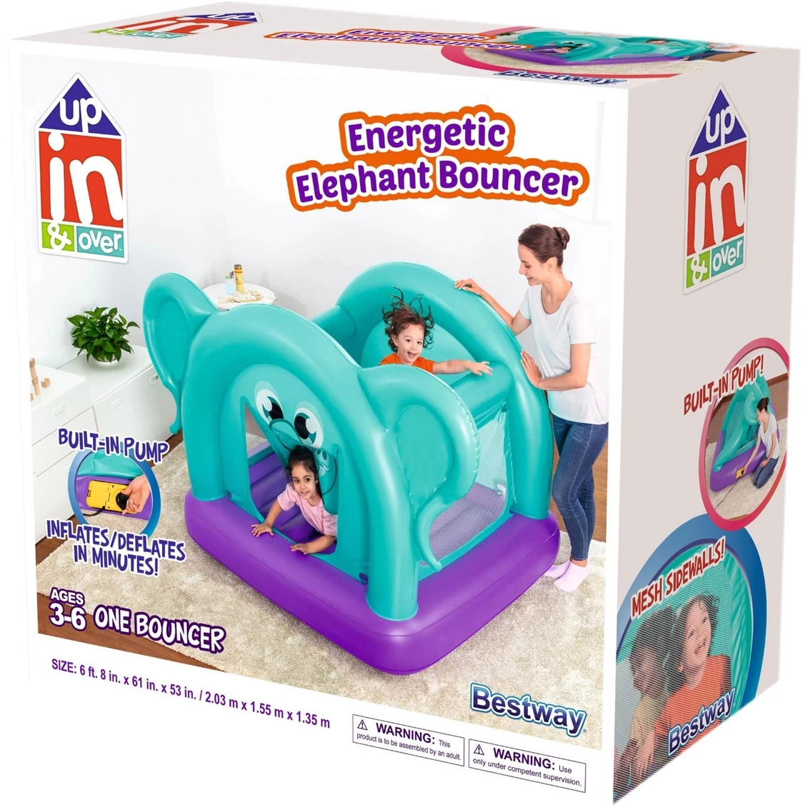 The Energetic Elephant Bouncer features mesh sidewalls, so you’ll be able to easily keep an eye on the kids as they bounce the day away. Plus, jump time will be extra fun as the elephant’s ears move with each bounce! Play time is just 3 minutes away with the Up In & Over Energetic Elephant Bouncer with Built-in Pump!