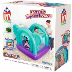 Kids will jump for joy when they see the Up In & Over Energetic Elephant Bouncer set up and ready for play time all year round! Kids will love the fun elephant graphics, while parents are sure to love the built-in pump that will inflate and deflate this bouncer in just 3 minutes at the touch of a button. This bouncer is super simple to inflate, deflate and store.