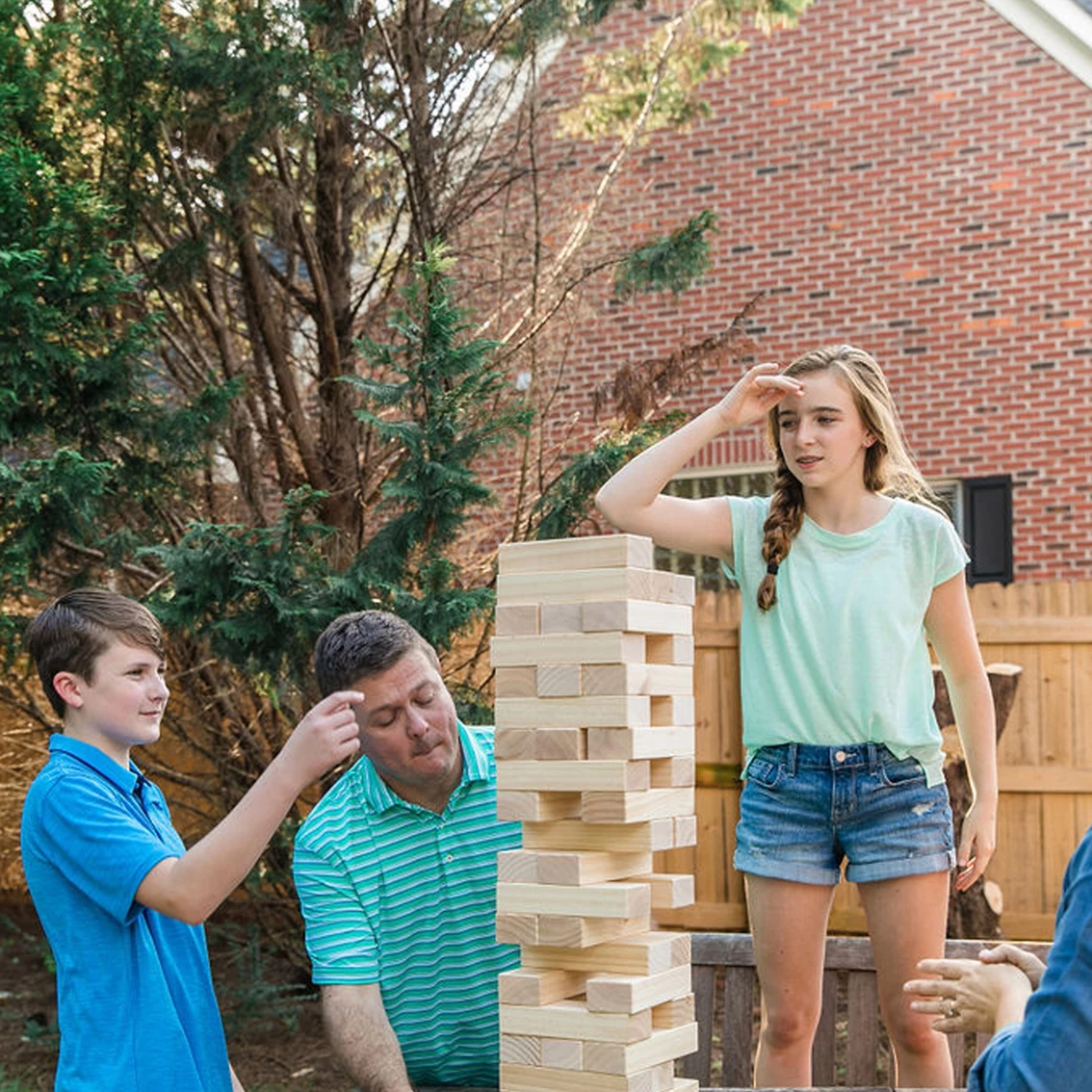 Watch out for this Giant Tumbling Tower game from Bolaball! The high quality, solid wood pieces are sanded smooth for easy use. The object of the game is to make a tower and start removing blocks from the bottom and placing them at the top. Can you succeed or will the tower coming tumbling down?