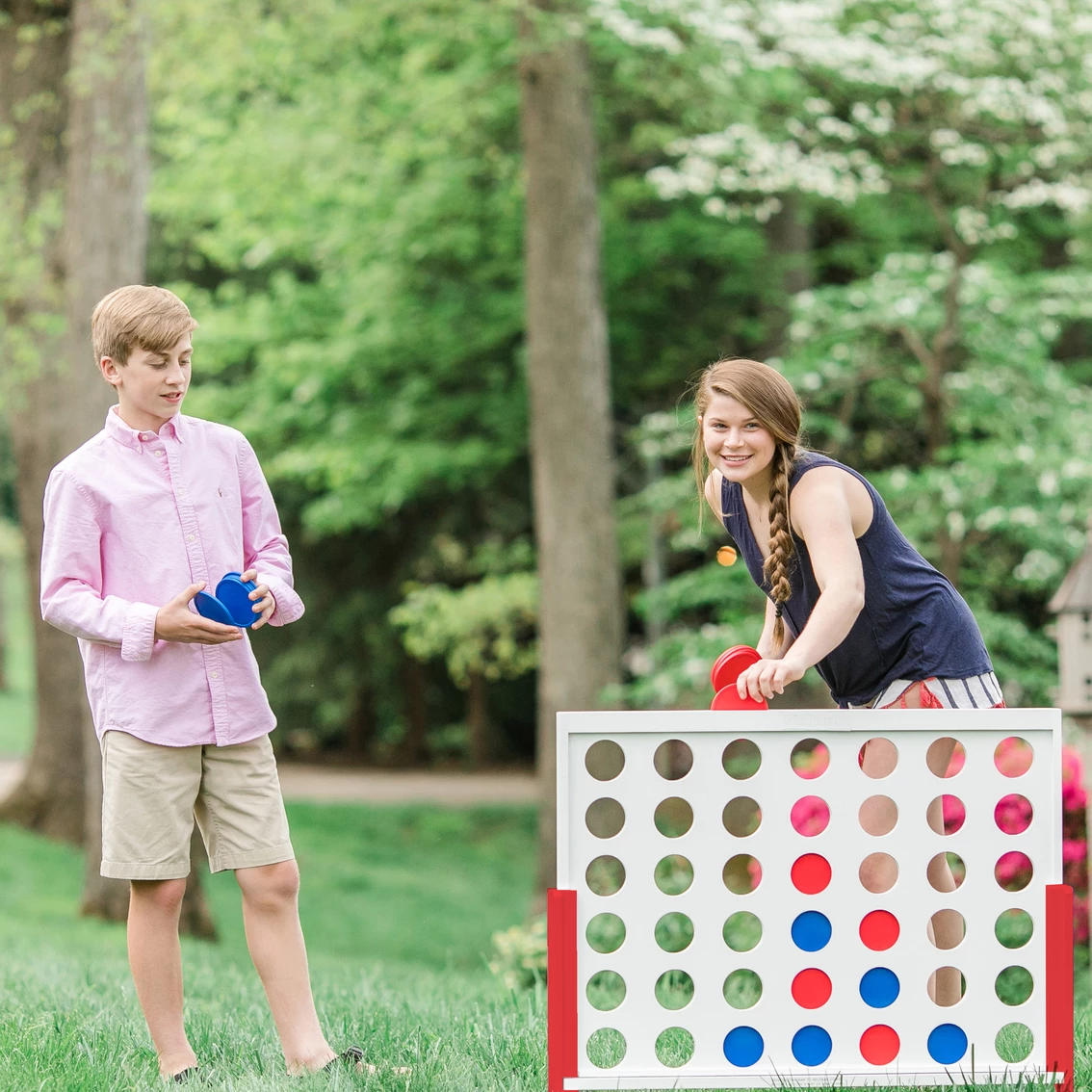 The object of the game is to play in teams and alternate turns. The first team to drop coins in from the top of the board in alternating turns trying to get 4 coins in a row either horizontally, vertically or diagonally in order to win. After the winning team is determined simply slide out the wooden bottom bar when finished to release the coins and play again! Game includes 1 solid premium wood target, 42 plastic coins (2 team colors), a heavy duty travel/storage bag and rules and instructions. The travel bag zips up for easy use and has separate pockets for the removable legs and coins. Model: ItmArt317583.