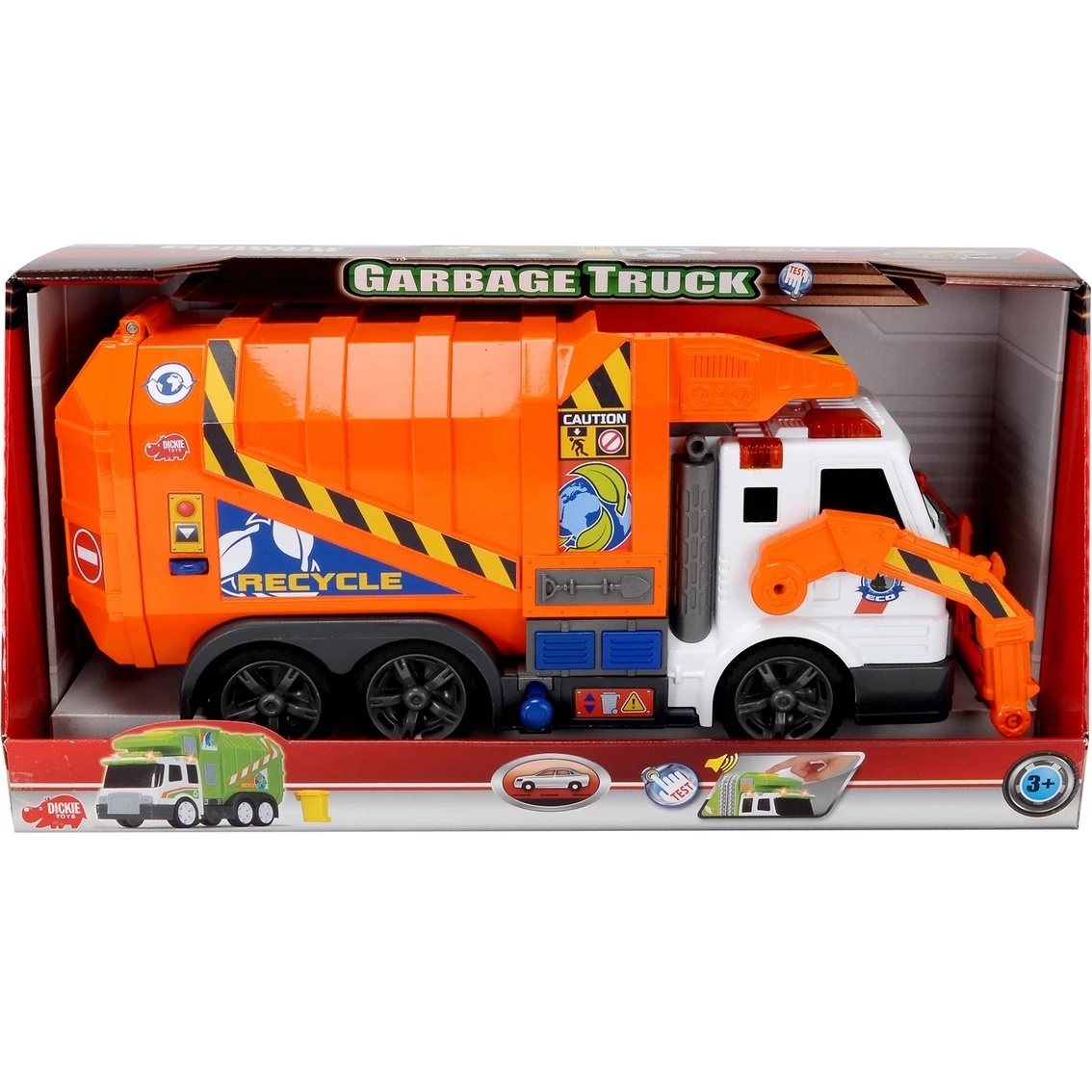 It’s your turn to keep the city clean with this amazingly fun Garbage Truck from Dickie Toys. This 16 in. long truck features button operated blinking lights and sound effects. A motorized arm lifts the garbage can and empties it into the back compartment and then that itself can articulate and dump as well. The vehicle is free-wheeling and comes with an additional garbage container. Batteries are included so it is ready for play right out of the box!