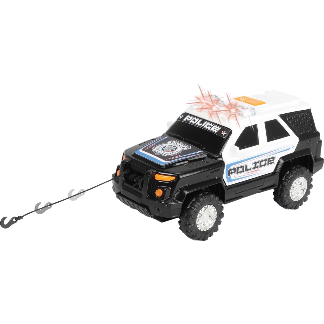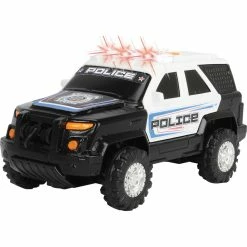 Rescue mission with an American police car! Everything’s bigger in America: even the police cars are big SUVs, made for use over rough terrain. Fat freewheel tires cruise across the floor. Of course there have to be light and sound effects, and urgent missions call for a blue light! Your child turns into a hero and through play learns to recognize police as friends. From fire engines to police cars: show your child the exciting world of international rescue vehicles! Recommended for three years and up. 3 x 1.5V Button cell batteries required, included. WARNING: CHOKING HAZARD — Small parts. Not for children under 3 yrs.