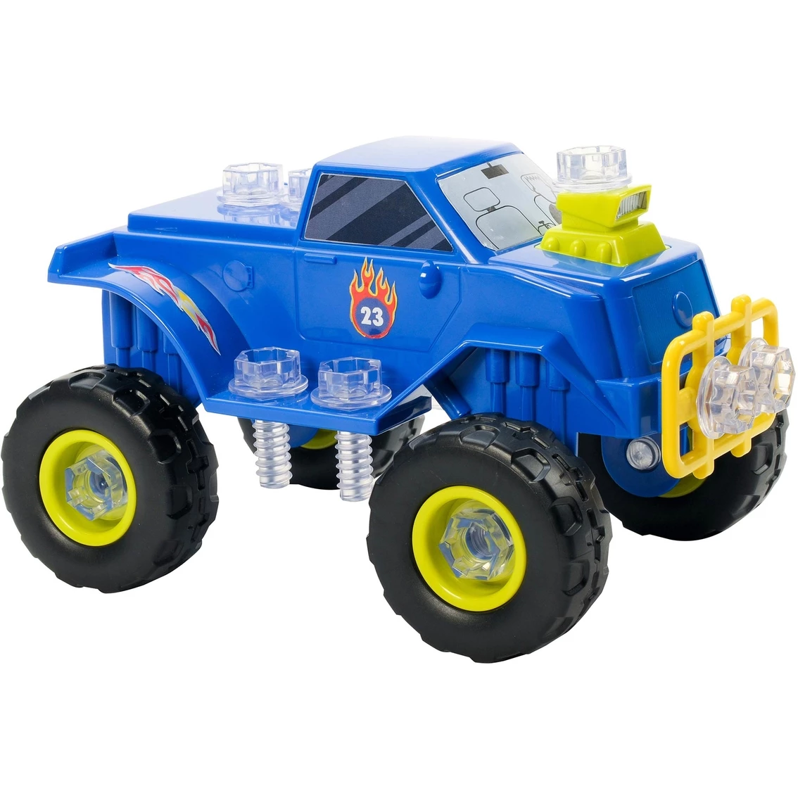 | Includes | Monster truck body, 6 snap-on parts, 15 clear bolts, decorative stickers, and multilingual instruction guide, motorized mini-drill with socket bit |