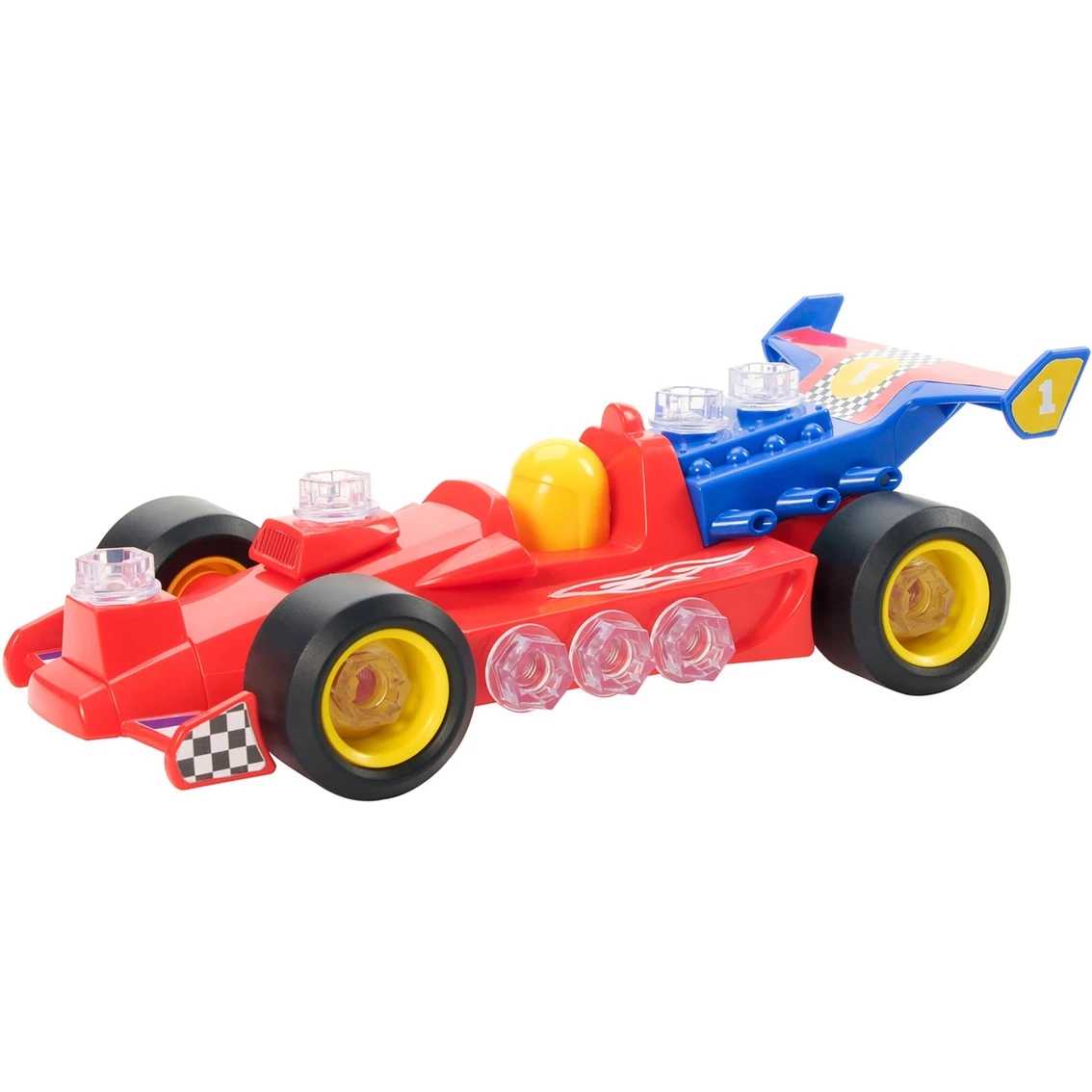 | Includes | Race car body, 7 snap-on parts, 15 clear bolts, decorative stickers, and multilingual instruction guide, motorized mini-drill with socket bit |
