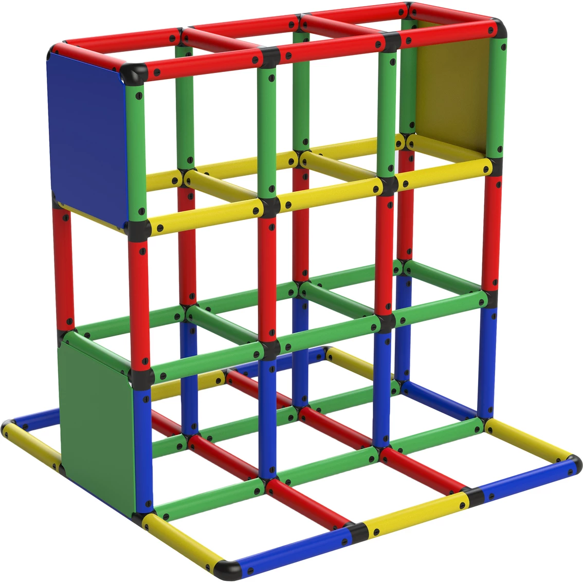This classic set contains 316 pieces of connectors, tubes, panels and screws made of very durable thermoplastic materials that are designed to last. So, you can use this construction set in your children’s playroom during the winter or take it to the outside during the summer. The structures can hold a capacity weight of up to 110 lb. to play on it. Assembly and disassembly is super easy. To assemble, simply put a tube over a connector and insert a screw, then use a key to turn the screw 90-degrees to lock the tube with the connector. To detach a tube from a connector, first remove the screw by turning it back 90-degrees and then turn the tube slightly to remove it from the connector. A comprehensive instruction manual which outlines the basic assemblies/fun structures and safety warnings is included with every builder set.