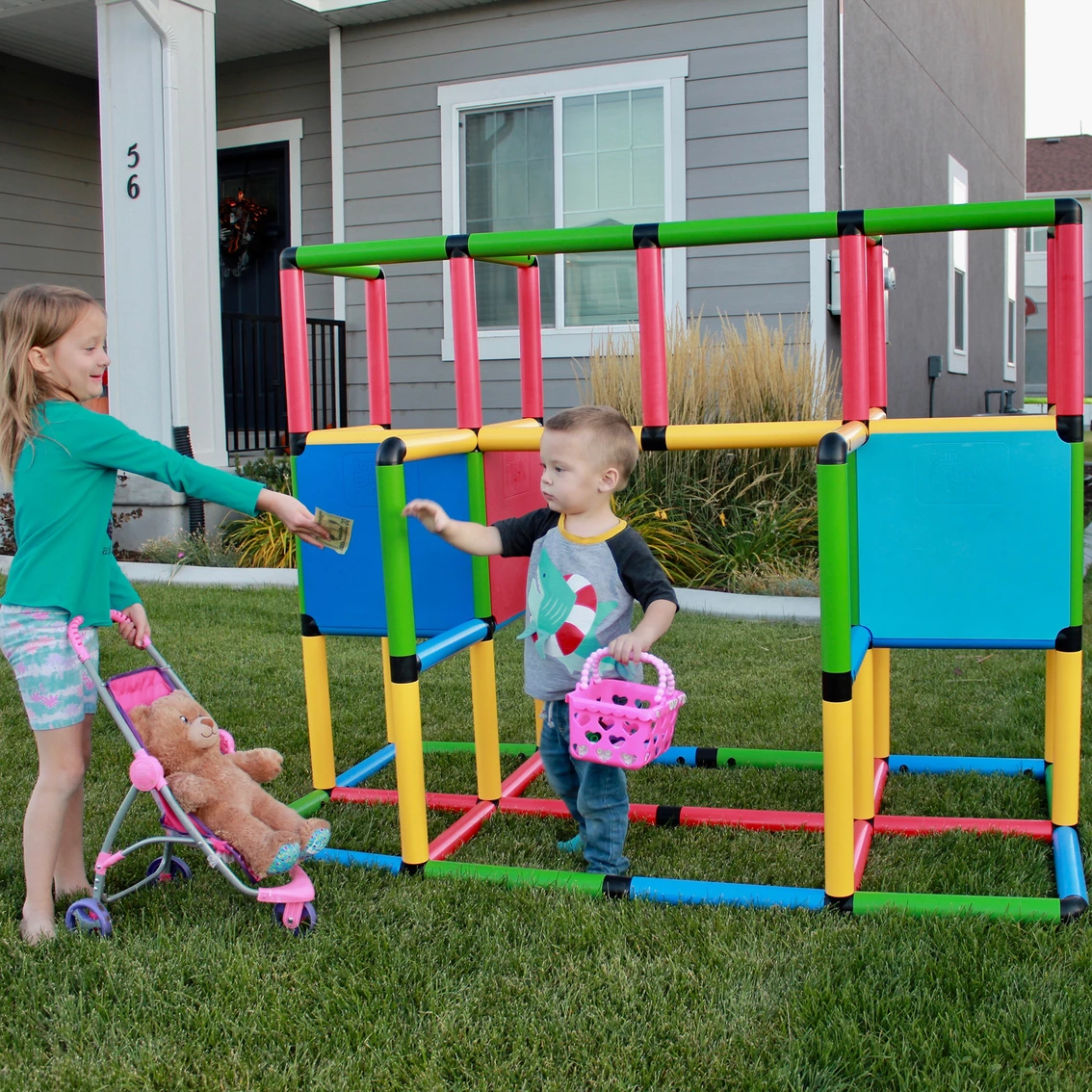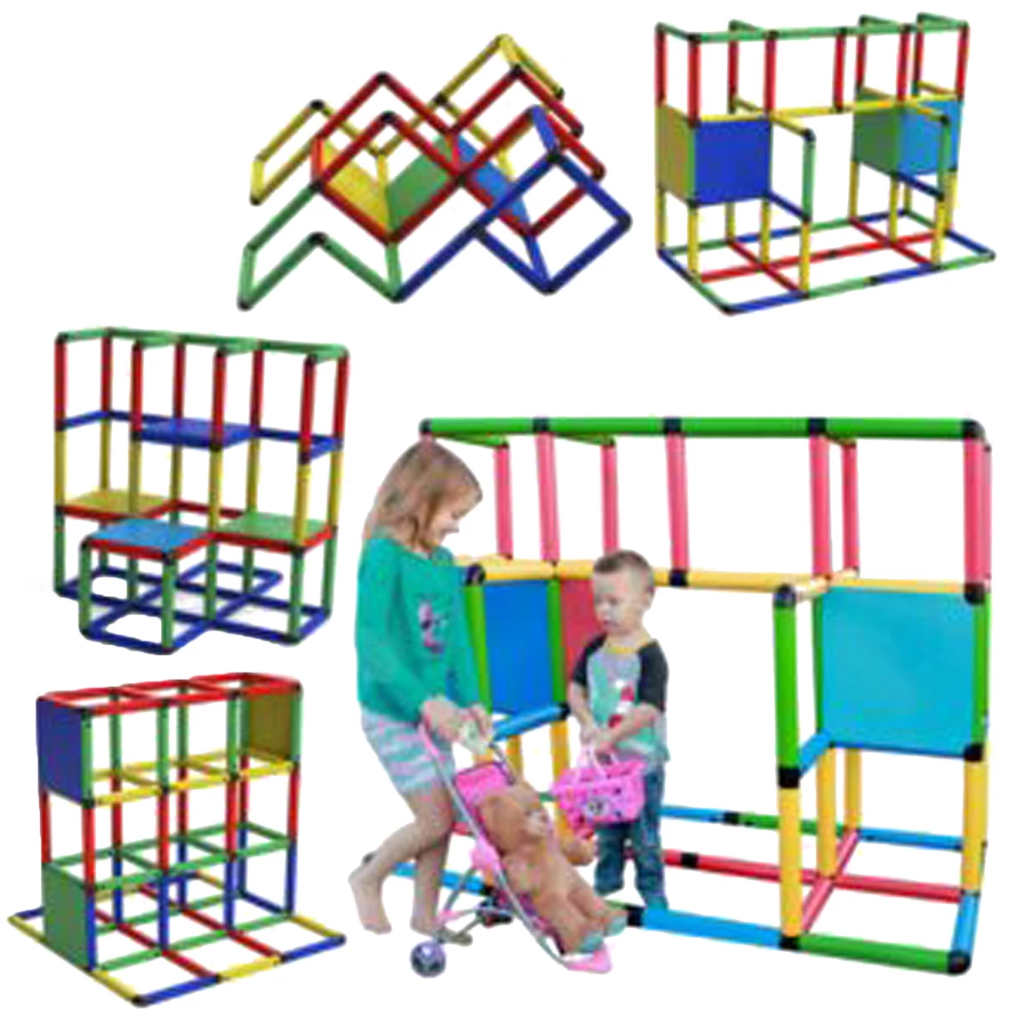 With this Funphix set, your child can built with it and play on it! This set is a unique construction system which enhances and encourages teamwork ability, hand-eye coordination, motor skills, as well as physical play on a self-built play structure! With Funphix toys, your children will soon become serious designers, analyzers and planners in their own construction world. They can build a variety of designs including a storefront, playground, toll booths and slides. The design possibilities are limited only by their imaginations. Ultimately the children then use the self-built play structure for climbing, sliding and endless hours of imaginative play. At the beginning, you can join with your kids and build structures as shown in the user manual and soon they will come to you with their own design suggestions.