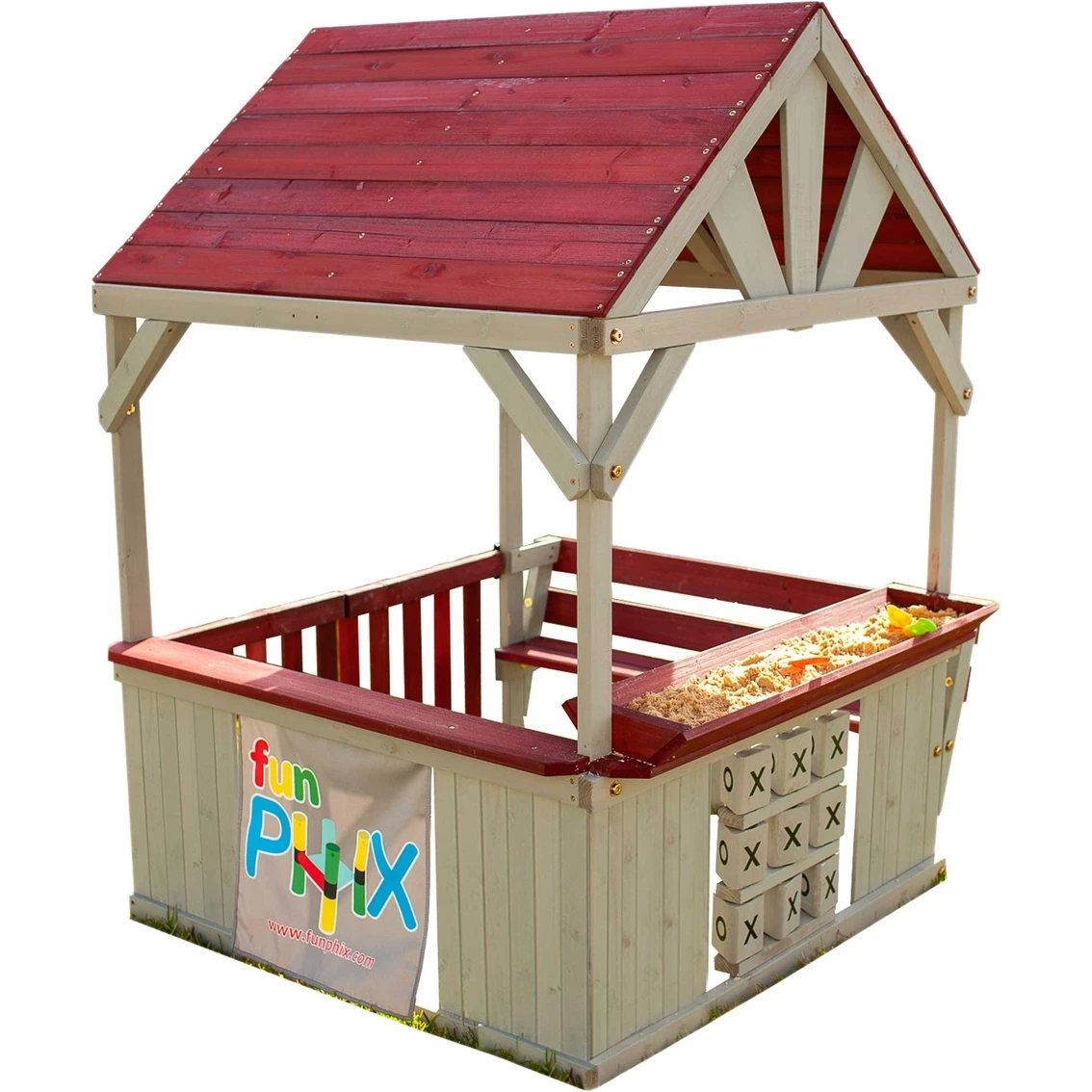 Brand new 💯 Funphix Hangout Hut Indoor And Outdoor Playhouse With Sandbox And Tic Tac Toe 🛒
