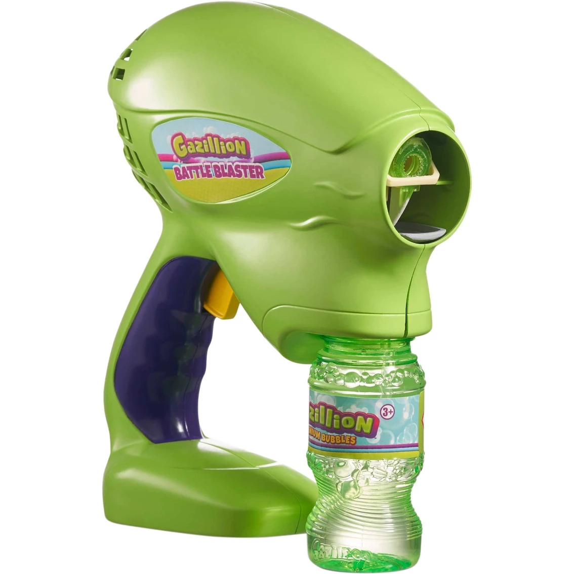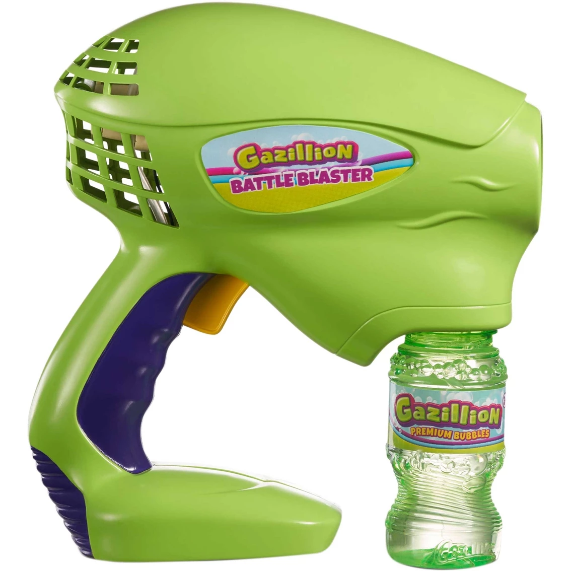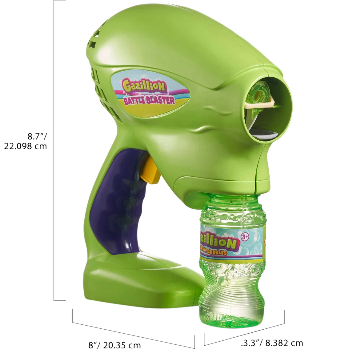 Get the bubble party started with the Funrise Gazillion Battle Bubble Blaster! Simply pour Gazillion Bubbles solution into the included tray, dip the bubble blaster into the solution, and pull the trigger to create a continuous stream of colorful bubbles. Bubble Blaster includes tray and 4 oz. bottle of non-toxic Gazillion Bubbles solution. Requires 2 AA batteries, not included. Appropriate for ages 3-years and up. Model: G0021664364475.