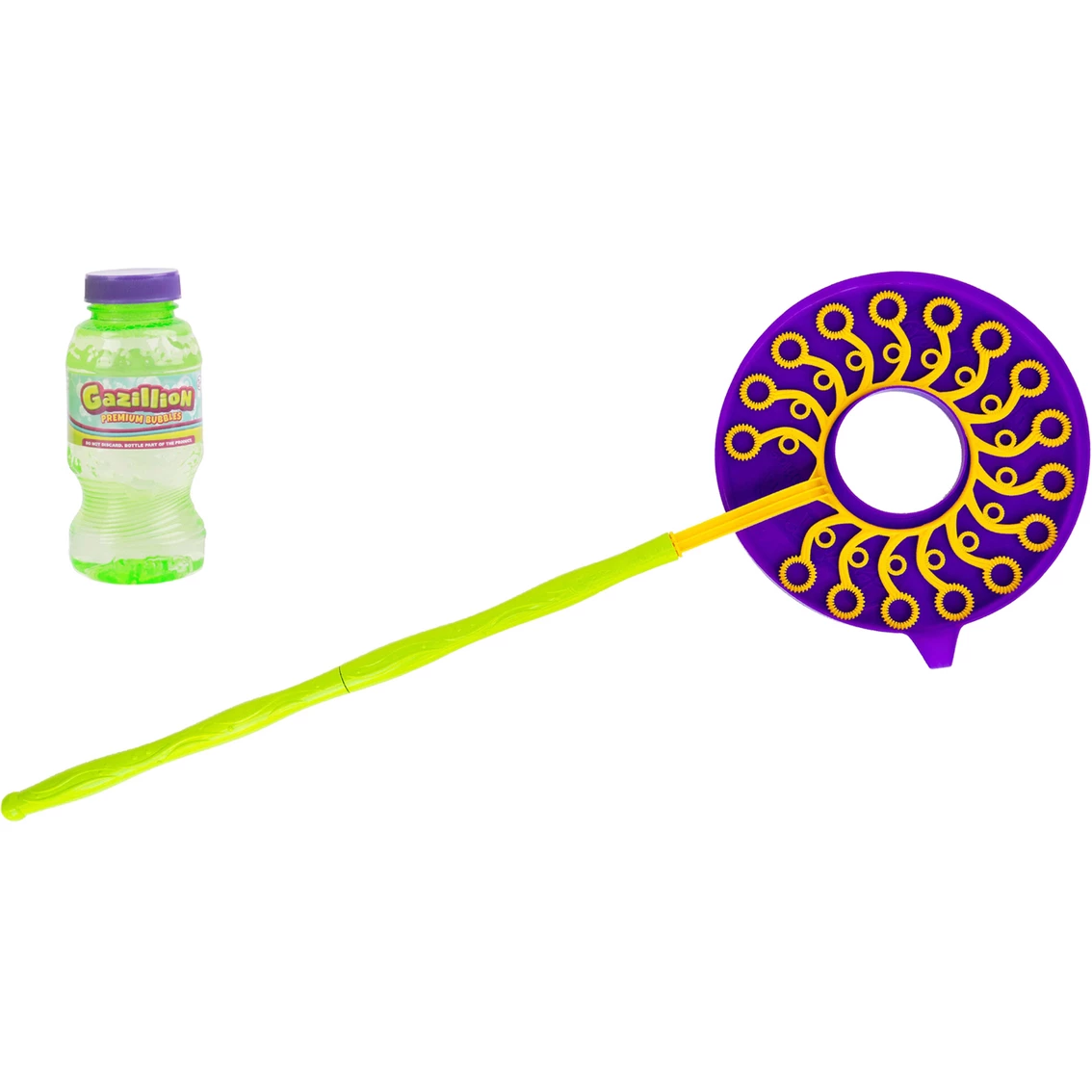 With the wave of a wand, you can instantly create zillions and zillions of bubbles! With 33 mini wands in one plus the flexible 3 ft. handle, it is easy to make more and more bubbles. Simply fill the tray with Gazillion Bubbles solution, dip the wand into the tray and wave around to make more bubbles than ever before! The tray is designed with a spout so once the bubble fun is over, pour any unused solution back into the bottle to be used next time! The Funrise Mega-Zillion Wand includes two 8 oz. bottles of Gazillion Bubbles Solution. Appropriates for ages 3 years and up. WARNING: CHOKING HAZARD — Small parts. Not for children under 3 yrs. Model: G0021664366202.