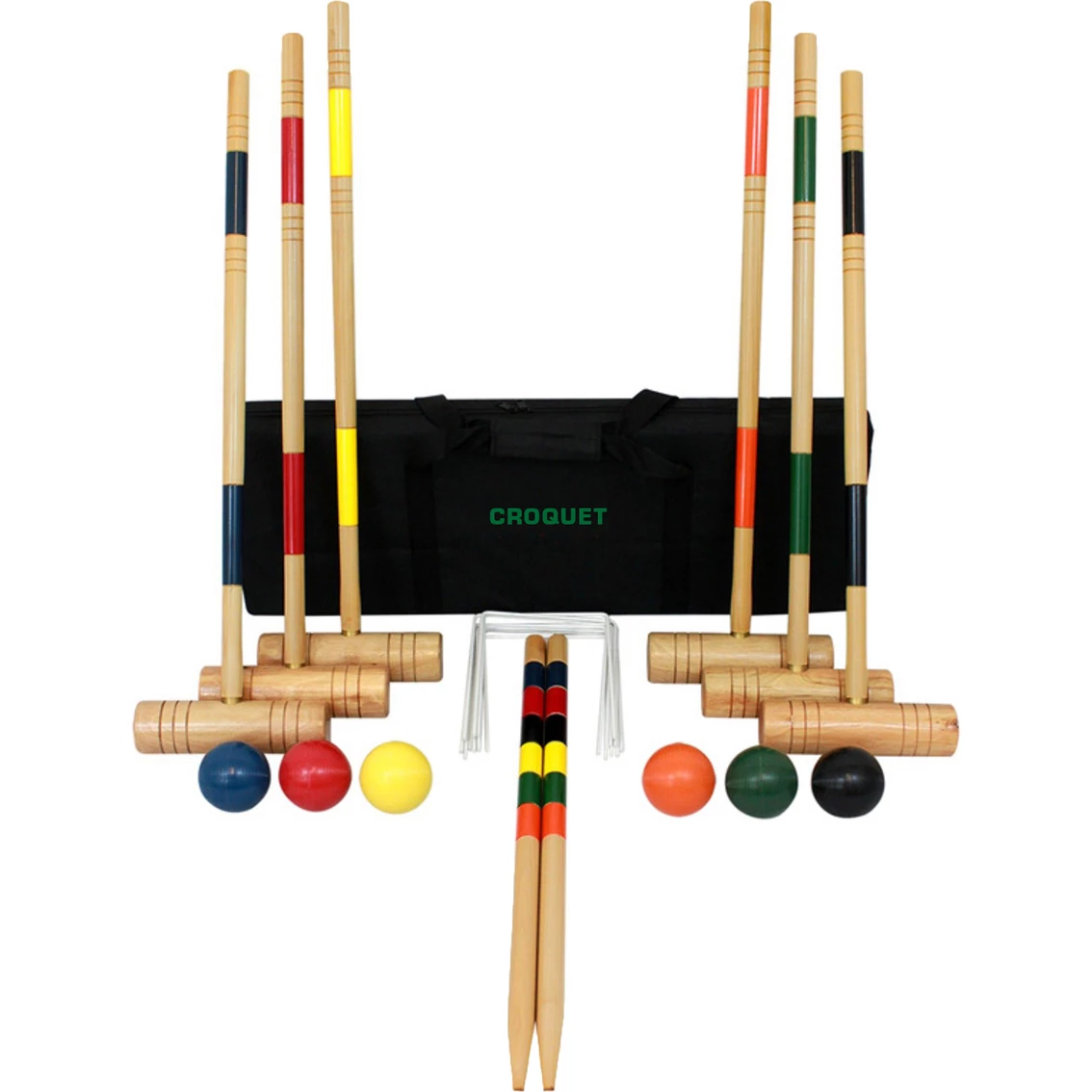 | Includes | 6 Wood Mallets, 6 Wooden Multi-colored Balls, Travel Bag, 2 Wooden Stakes and 9 Metal Wickets |