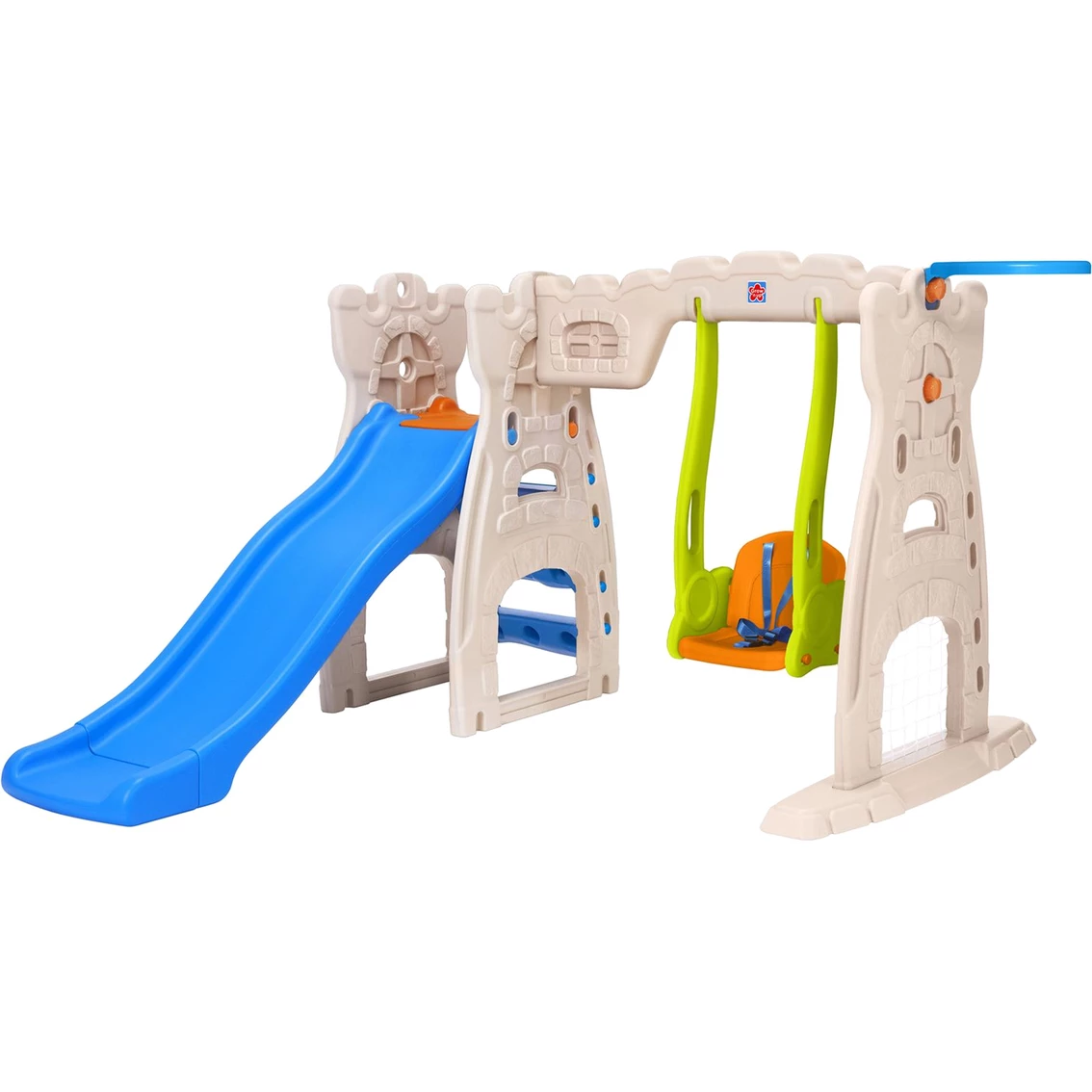 The Grow’n Up Scramble ‘N Slide Play Center is a must-have for your toddler. This set will keep them outdoors and active. It features an inspiring castle theme for those creative imaginations and an easy grip climbing wall with a safe crawl-through space. This set also has a swing and a 5.5 ft. long slide chute. This set is ideal for a maximum of 3 players at one time. Assembly required. Model: 2016-05.
