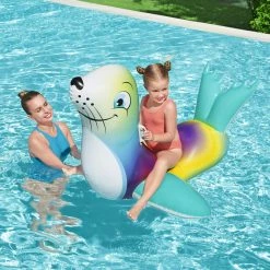 It’s easier than ever to seal in an awesome summer with the H2OGO Flash n’ Splash Seal Ride-On Pool Float! This flashy, sleek, tie-dye seal will splash into the water and glide into your heart this summer. Kids can easily grip the heavy-duty handles to take this whimsical creature out on the water at the beach, lake or pool. The Flash n’ Splash Seal Ride-On has an inflatable head, tail and flippers to help the rider stay balanced and in place while in the water. This seal’s chromatic tone will catch the attention of everyone on the water and allow your child to show off a bit of personality. And with its ability to easily inflate, deflate and store, this ride-on pool float will bring joy to your family year after year. Perfect for pool parties, beach photos and social media, the buoyant seal makes it easy to lounge in the sun or wade through the water while having fun! Model: 41479E.