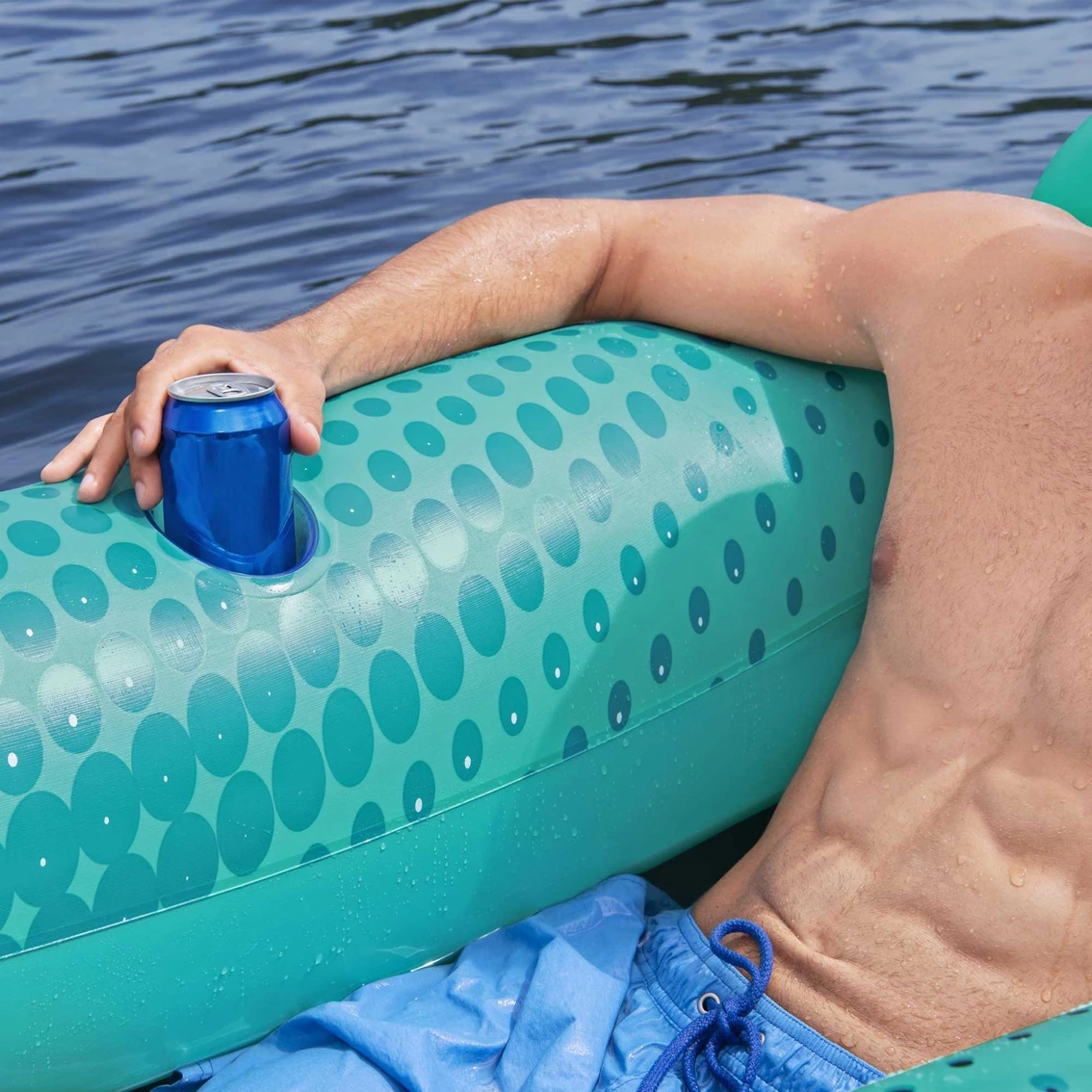 The Hydro-Force Sol Venture Mesh Lounge is ready for an all-day adventure on the water. Perfect for the lake, river, pool or beach, this premium float provides you with everything you may need for a great day under the sun. Designed for relaxation, this lounge allows you to comfortably recline backwards as you float along the water, and the built-in headrest provides extra comfort for your neck while you lounge. It also features a cup holder for storing drinks and snacks for when you need a little pick-me-up. The Sol Venture Lounge is made with puncture resistant, stretch resistant Inflata-Shield material for additional durability and enhanced grip. The seat of the float is constructed with a breathable mesh that will keep you floating right beneath the surface of the water to naturally keep you cool under the warm sun. Fun and adventurous, the Sol Venture Lounge is made for a trip out on the open water! Model: 43540E.