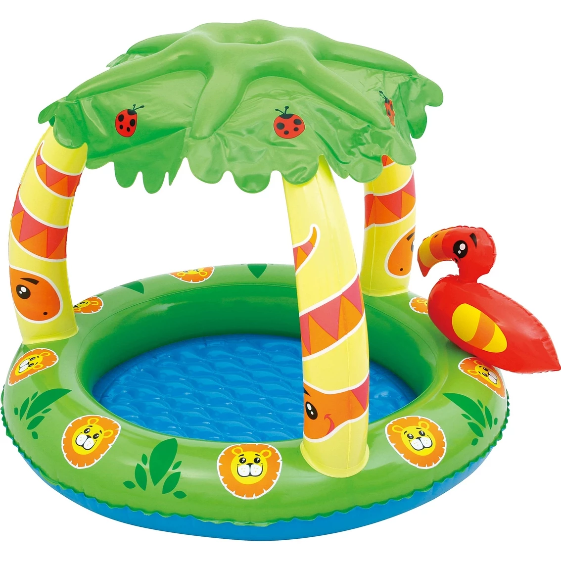 Protect your children with shadows, sunscreen and special products like the UV Careful Inflatable Jungle Play Pool from H2OGO. Designed for exercise and great fun outdoors, the friendly paddling pool focuses on fun! With this fun jungle pool for the little ones, your child will have their own pool in the garden. The shady palm tree protects your child from the sun and the pleasantly soft, inflatable floor offers additional comfort. The roof has UPC 50+ for the most reliable sun protection. Playing in the sun has never been so fun and safe! The name UV Careful already says it all! Model: 52179E.