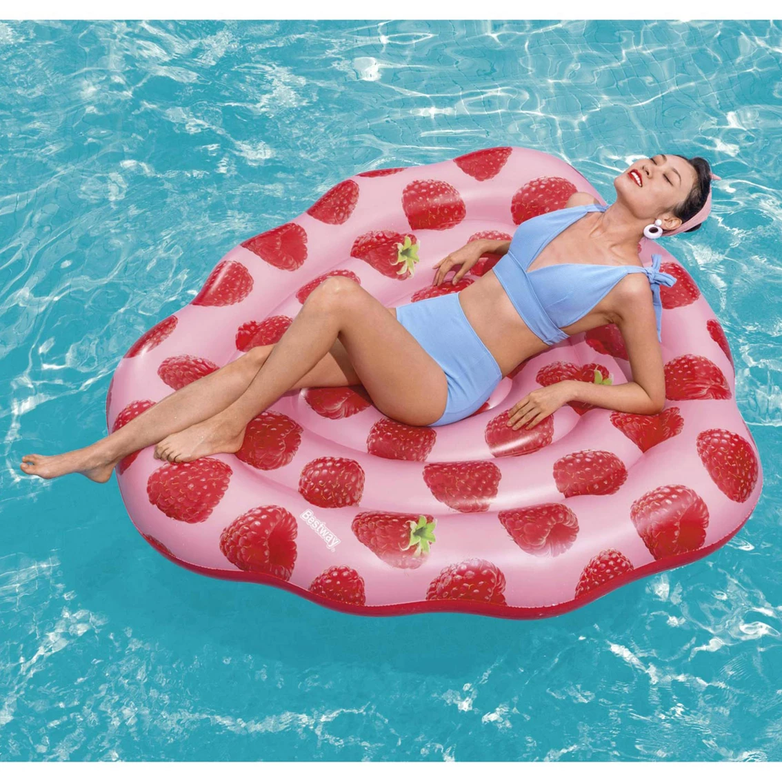 Let the sweet summer smell of the H2OGO! Scentsational Raspberry Pool Float whisk you away to your happy place! This float is infused with a tasty and fruity raspberry scent, and the mouth-watering aroma is sweet and cool, without being too powerful or overwhelming. The Scentsational Raspberry Pool Float will have everybody talking — and sniffing — this summer! Plus, the cute, trendy raspberry print is perfect for a summer pool party. The larger size of the float is perfect for relaxing in the sun — people won’t be able to take their eyes (or noses) off of it! Model: 43396E.