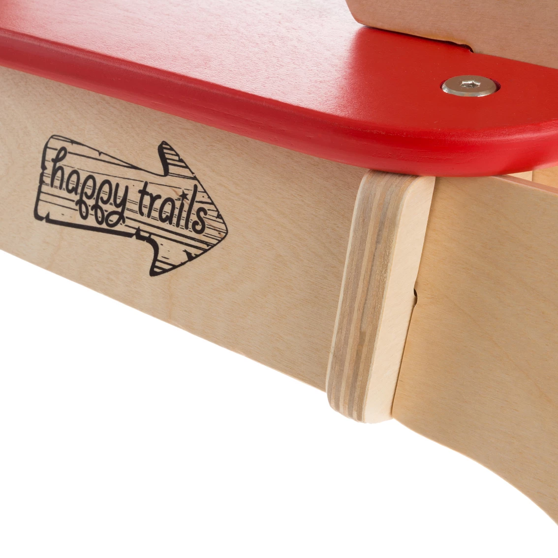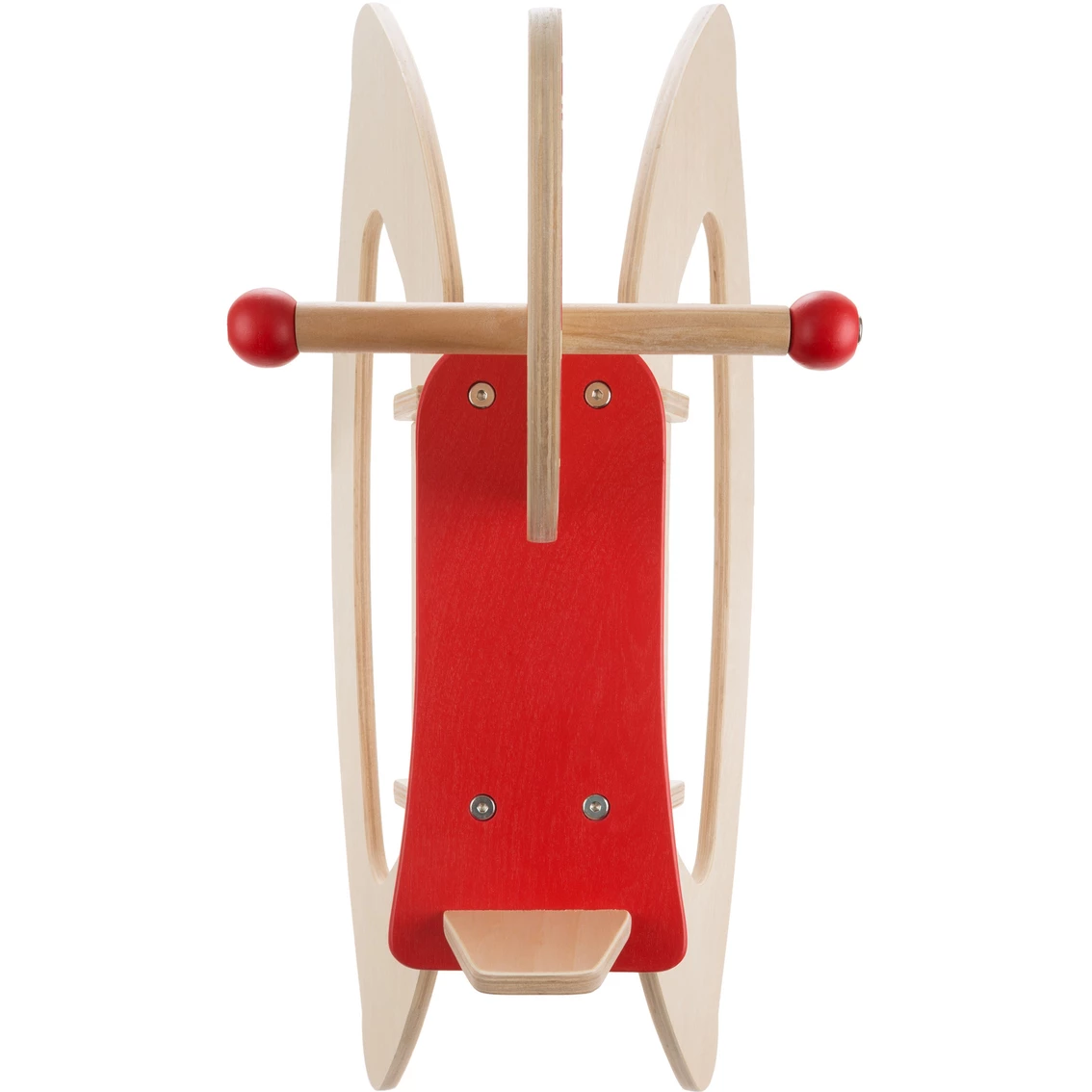 - Product Details: Materials: Birchwood plywood. Colors: Natural wood and red. Dimensions: 26 in. L x 7 in. W x 19 in. H x W of seat – 5 in., W of base – 8.5 in.