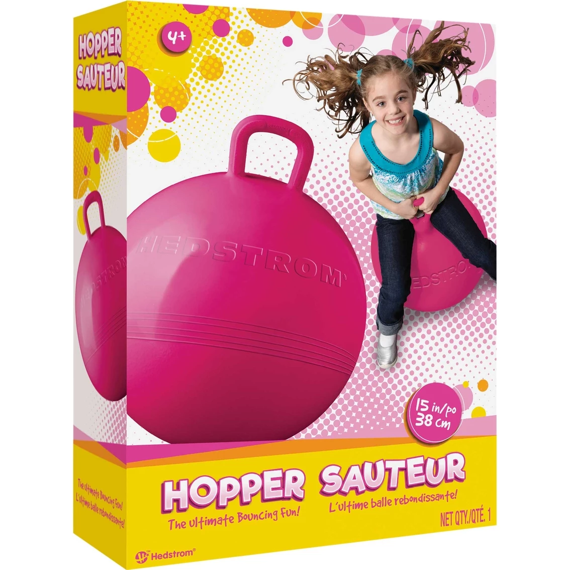 The Hedstrom 15 in. Fun Hop is a great way for kids to expend some energy, get exercise and have tons of fun! Helps build coordination. Constructed of heavy gauge vinyl and boasts a durable grab and grip handle that will last for a very long time. Excellent for indoor and outdoor use. Deflates for easy storage with a safe, recessed valve. Product dimensions: 15 in. diameter. Maximum weight is 100 pounds. WARNING: CHOKING HAZARD — Small parts. Not for children under 3 years old.