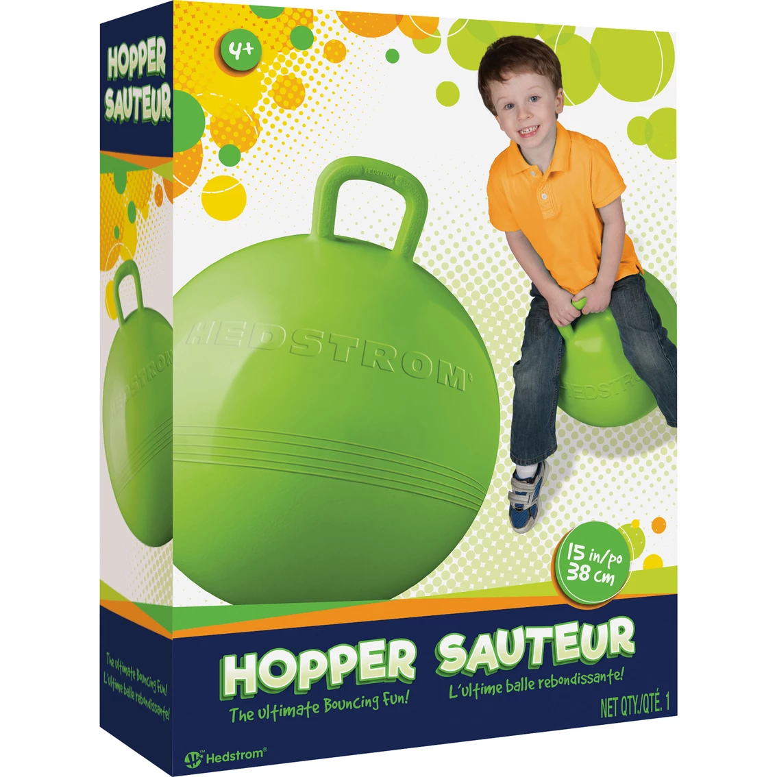 This Hedstrom 15 in. Hopper is great way for kids to expend some energy, get exercise and have tons of fun! Helps build coordination. Constructed of heavy gauge vinyl and boasts a durable grab and grip handle that will last for a very long time. Excellent for indoor and outdoor use. Deflates for easy storage with a safe, recessed valve. Product dimensions: 15 in. diameter. Age – 4 and up. Maximum weight is 100 lb. WARNING: CHOKING HAZARD — Small parts. Not for children under 3 yrs. Model: G0033149119340.