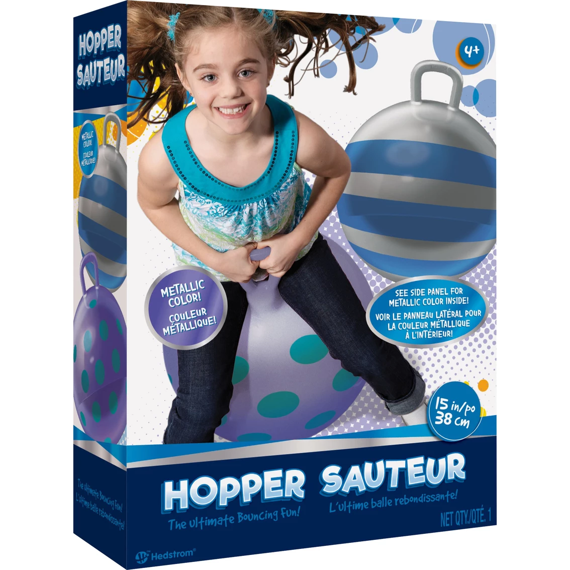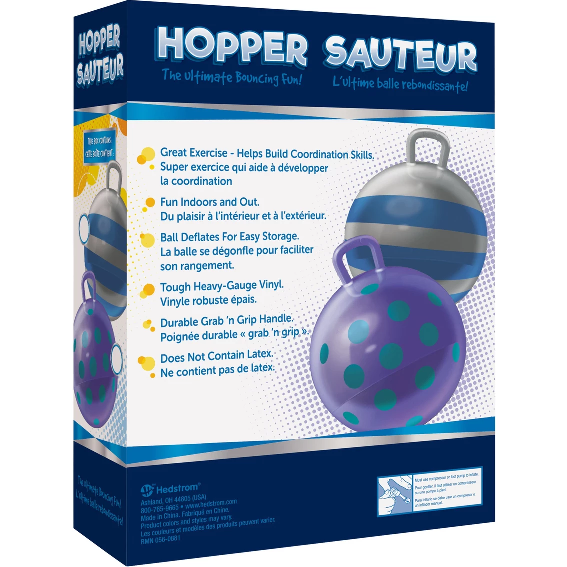 Hedstrom’s Hopper Ball will be one of your child’s favorite toys! Watch them bounce and hop all around the house and yard. This Hopper Ball is a great source of fun exercise for children and helps in developing key cognitive skills for their future. This Hopper Ball has an easy grip-and-grab handle, providing safe, exciting and unplugged fun! It can be used indoors or outdoors and promotes coordination and exercise for ages 4 years and up. Weight capacity of 100 lb. Warning: Choking Hazard — Small parts. Not for children under 3 years old. Model: G0033149014614.
