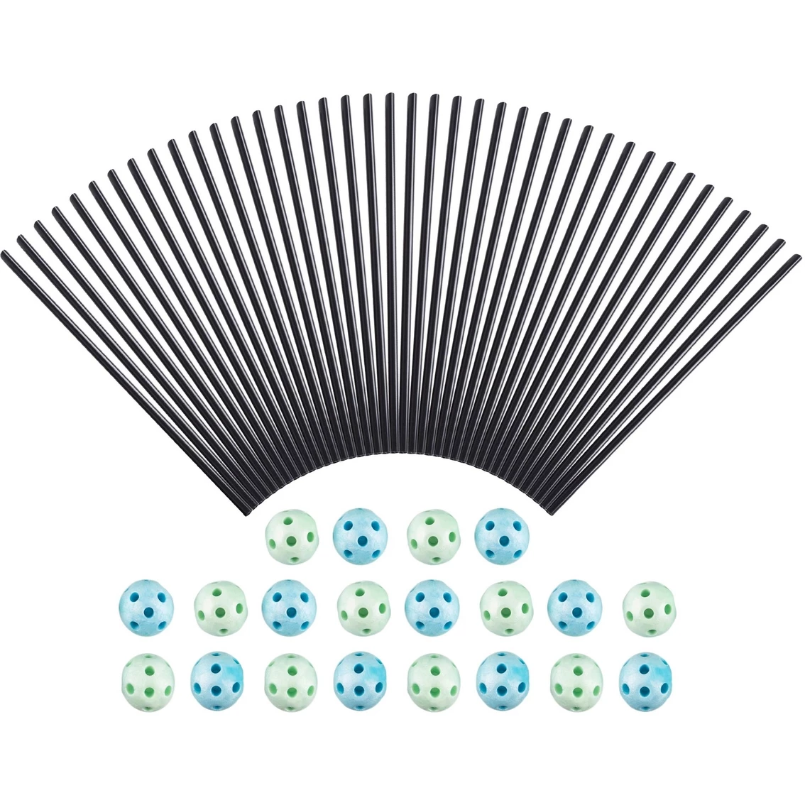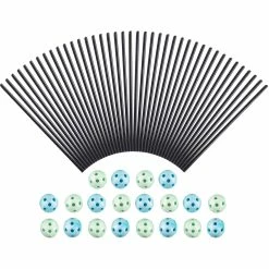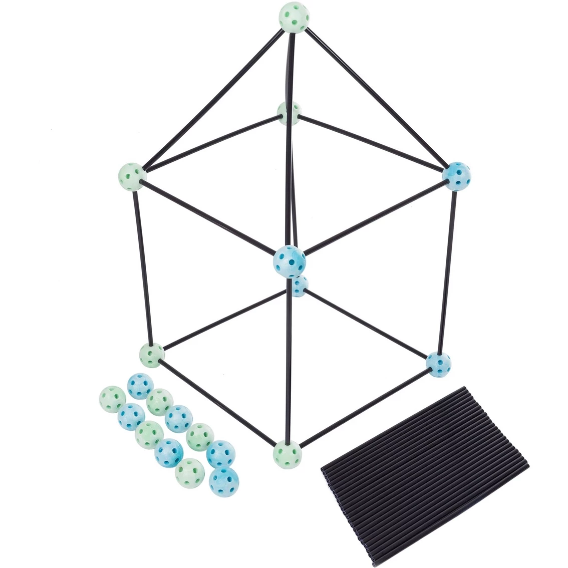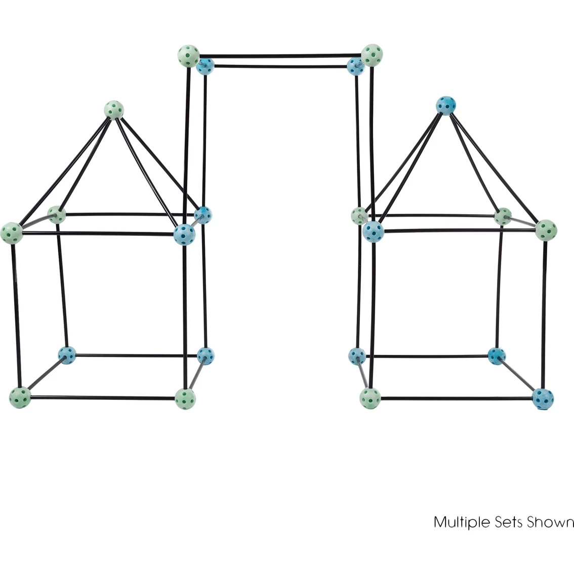 PRODUCT DETAILS: This complete construction fort building set includes 40 plastic rods, each measuring 15 in. long, and 20 multi-dimensional, geometrical ball connectors, each measuring 2.1 in .diameter.