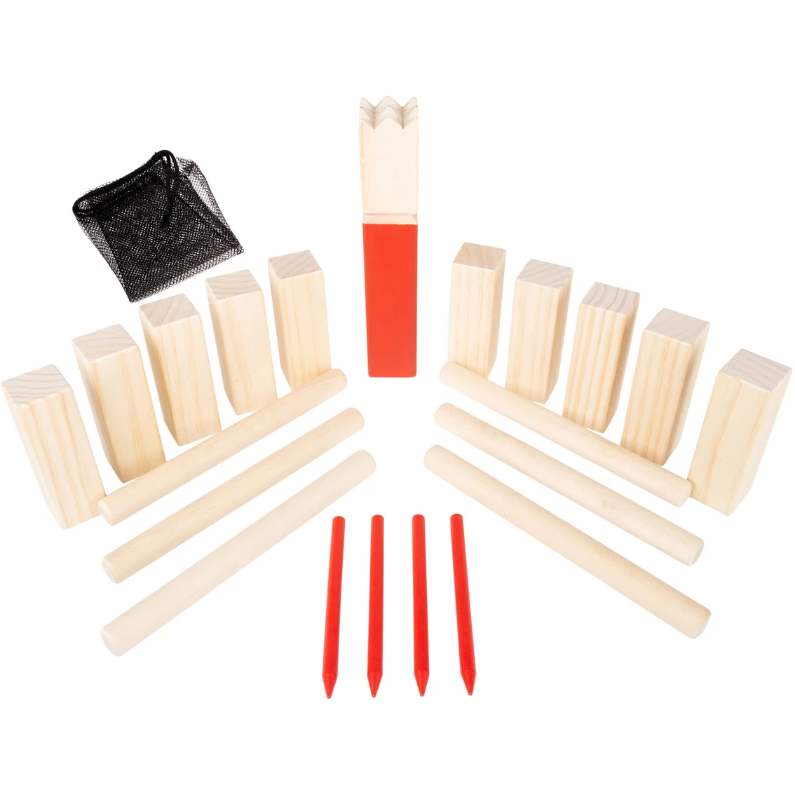 All 21 pieces of this game set are constructed of durable pine wood and sanded to a smooth finish for easy handling and throwing. The large king block piece is painted red so you can keep your eyes on the prize of winning this game.