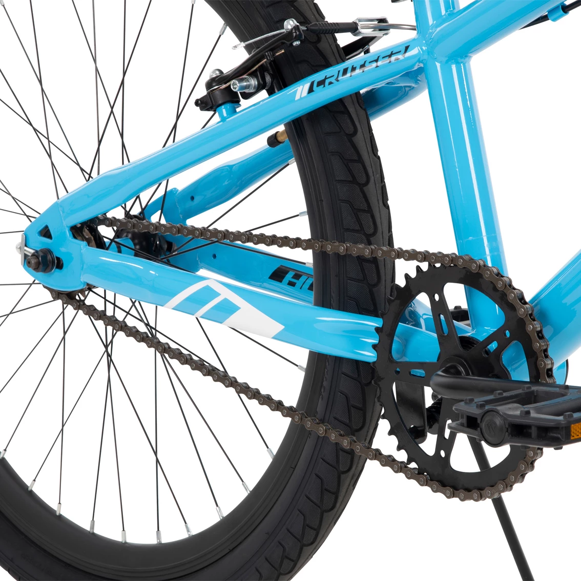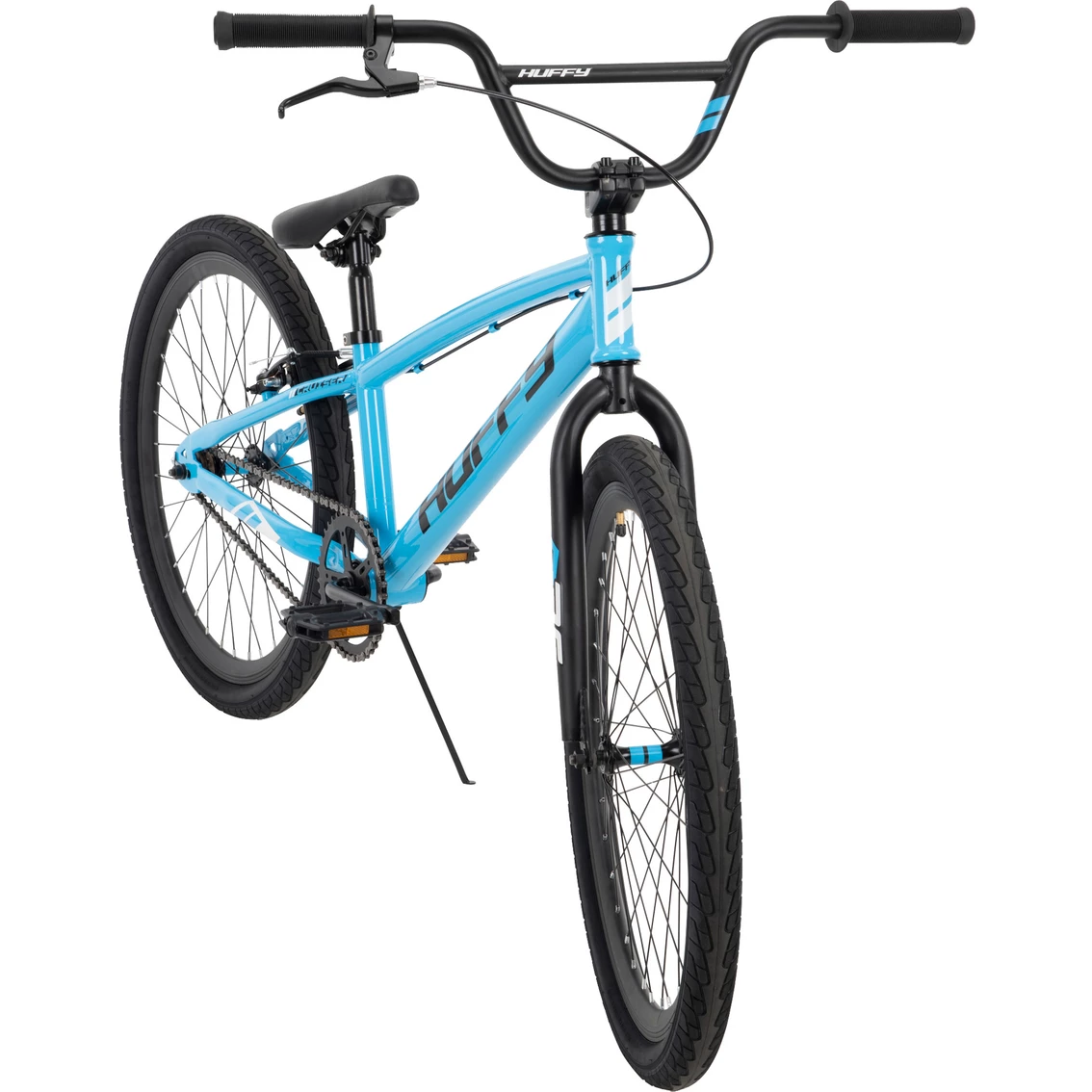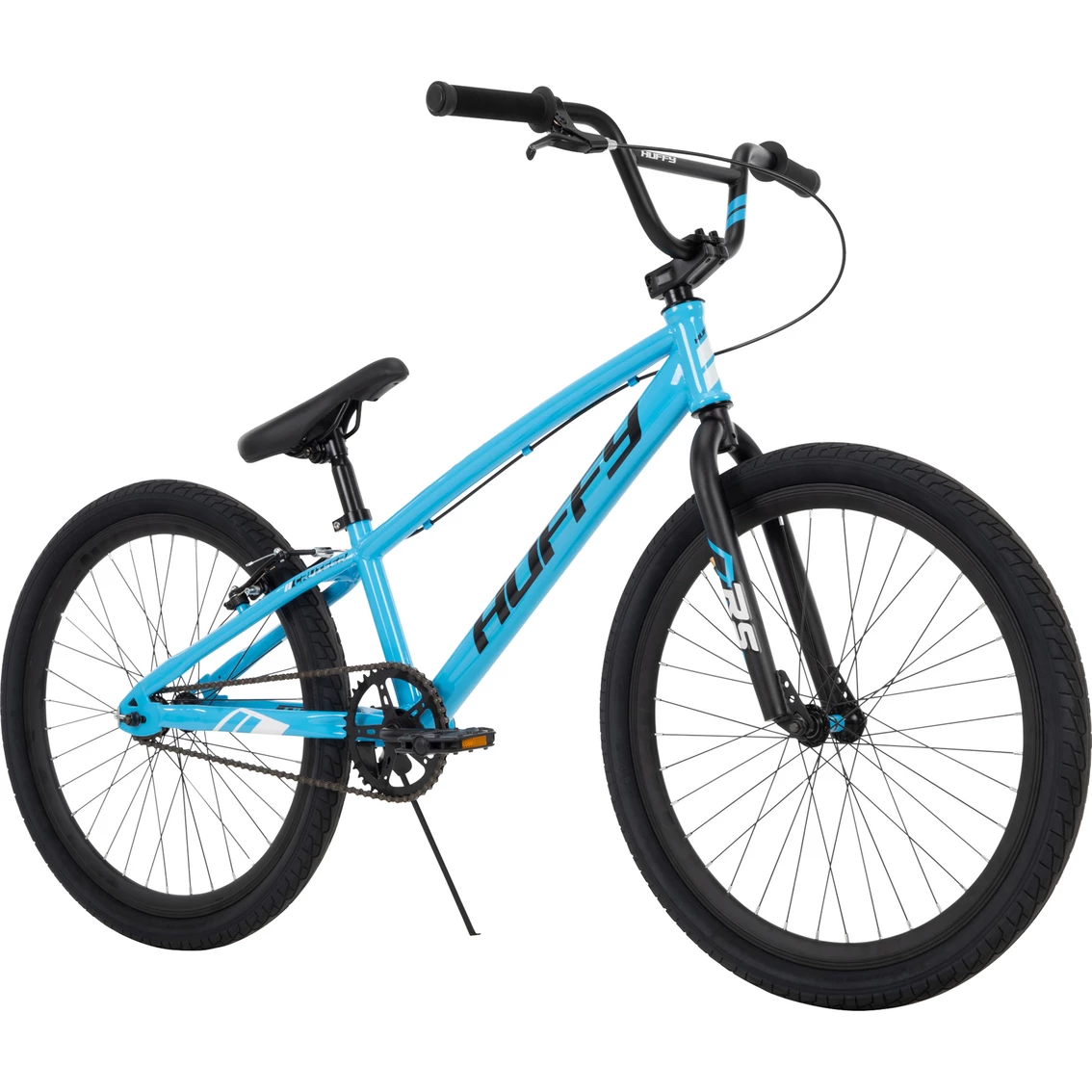This 24-in. Huffy BMX Racing Bike has a simplistic style and appeal. The light blue frame, white and black accents, and alloy double-wall rims give this BMX bike a slick look. Plus, the steel frame adds durability and performance capabilities to allow for maximum riding and trick potential. The durable BMX frame is suited for riding on level surfaces as well as uphill and downhill roads, as well as anything you might encounter at the skate park. Rear alloy V-brake offers great control and helps the rider learn to stop with confidence. The alloy double-wall rims increase strength so your bike can perform at the highest level. Resin BMX pedals, one-piece crank and Krayton grips add performance and comfort to this bike. A stitched ATB-saddle gives it a cool look, and the easily adjustable seat post ensures you’re riding at the most comfortable height. Whether you’re taking this BMX bike to the street or to the trail, Huffy’s provided all the right specs to give you a great experience. Recommended Age: Ideal for ages 12 to 19 years old. Ideal Rider Height: 58 in. and up. Model: 24021.