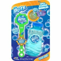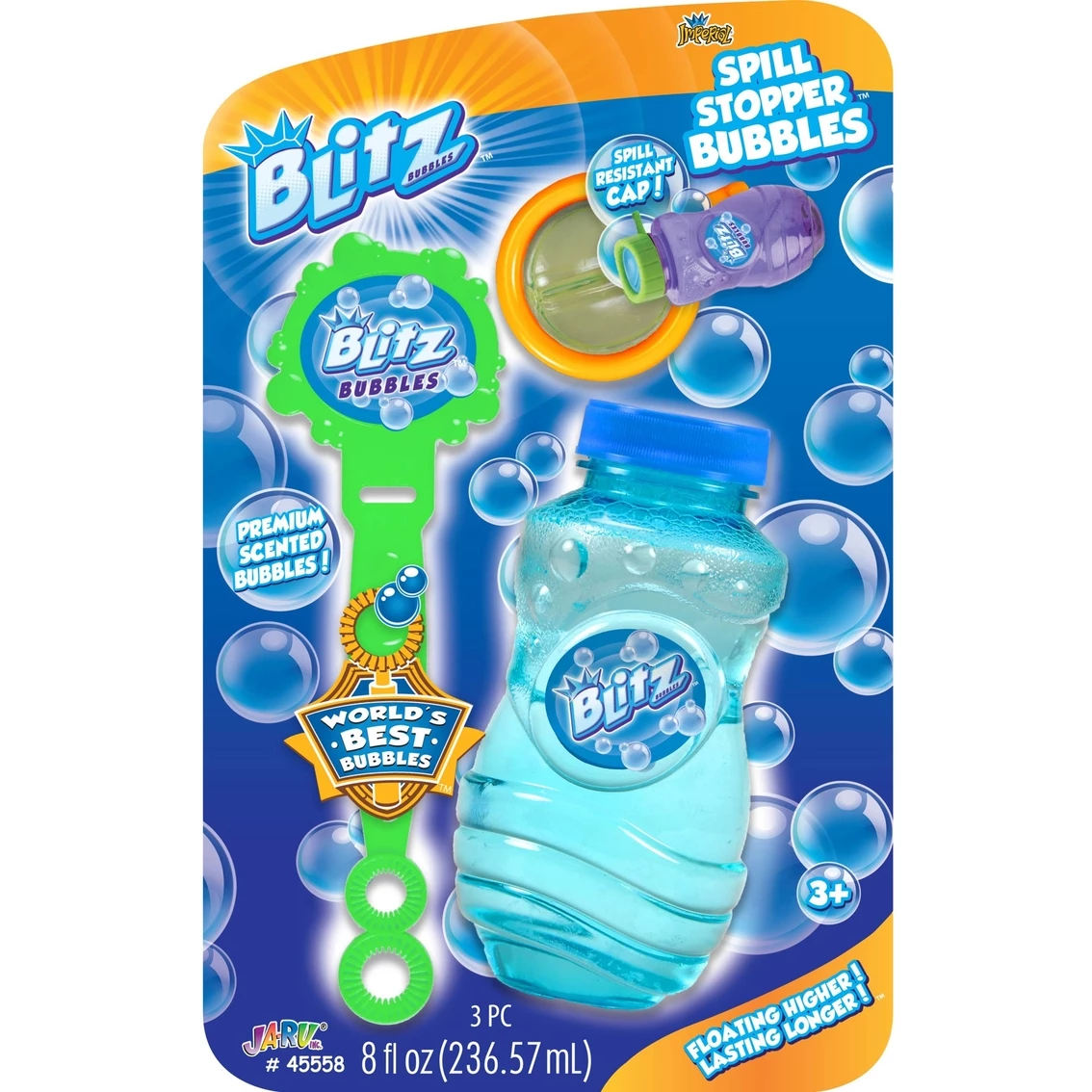 The Blitz Bubbles Spill Stopper Bubbles from Ja-Ru makes the world’s best bubbles! Floating higher, lasting longer! Spill resistant cap! Includes hook on cap to hold wand. Model: 45558.