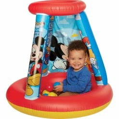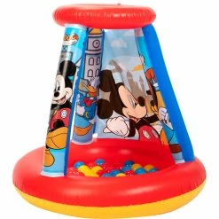 The Jakks Pacific Mickey 15 Ball easy to inflate playland includes 15 soft flex balls for plenty of tossing or game fun. The open ball-toss roof and crawl-through design are perfect for young adventurers. Bright character graphics will keep your child entertained for lots of imaginative fun. Toss, play and crawl! Model: 503481-6.