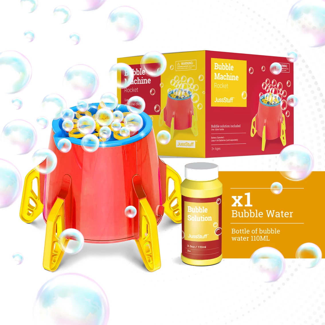 – Suitable For Outdoor and Indoor – With this entertaining toy, your outdoor fun can come indoors. Because it is lightweight and mobile, this rocket bubble machine is perfect for those who love fun outdoor activities as well as having parties indoors.