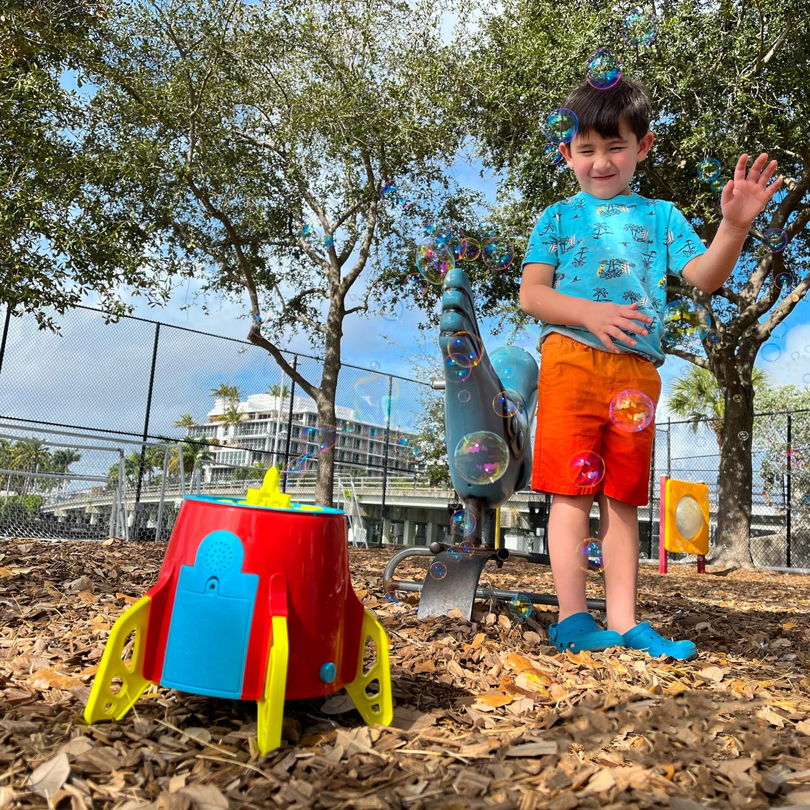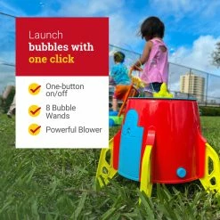– Unique Design – This bubble machine looks like it’s ready to blast off and take you on an adventure through all sorts of fun places.