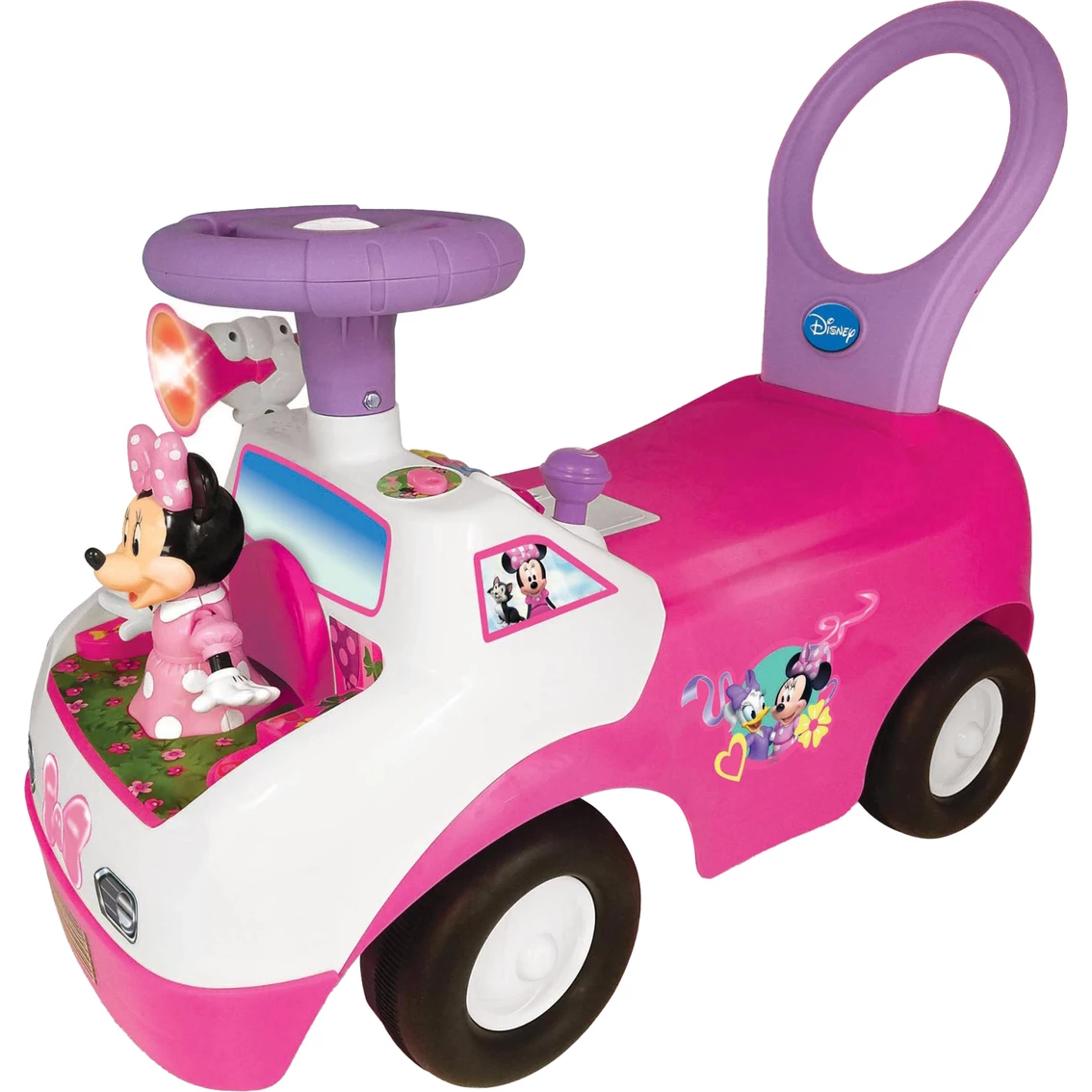 Hear Minnie play her favorite music as she turns her head and dances to the beat! This ride-on toy from Kiddieland features interactive electronic activities that play rewarding lights and fun sounds. Press the little horn on the side for lively music, or steer wheel and honk horn for great driving fun. Model: G661148555410.