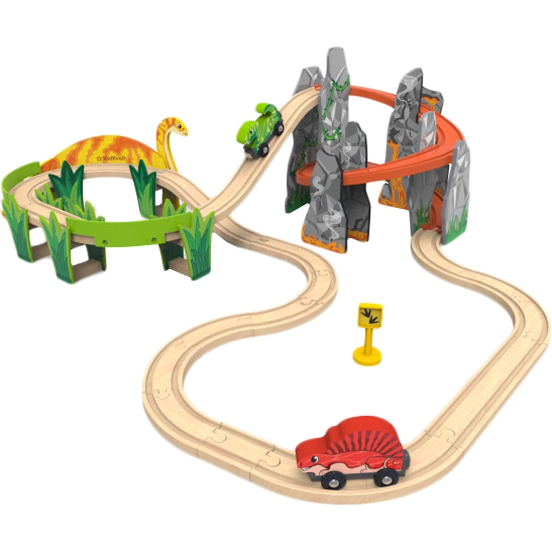 Time is of the essence when a volcano is erupting. Race through eons of excitement in the KidKraft Adventure Tracks: Dino World Volcano Escape. Spiral through the lava and across the Bronto Bridge to safety. Hide among the grasses until the coast is clear, then venture backโฆif you dare! Set up the journey many different ways, thanks to the reconfigurable tracks and trestles.