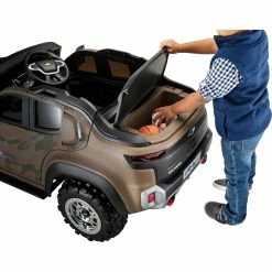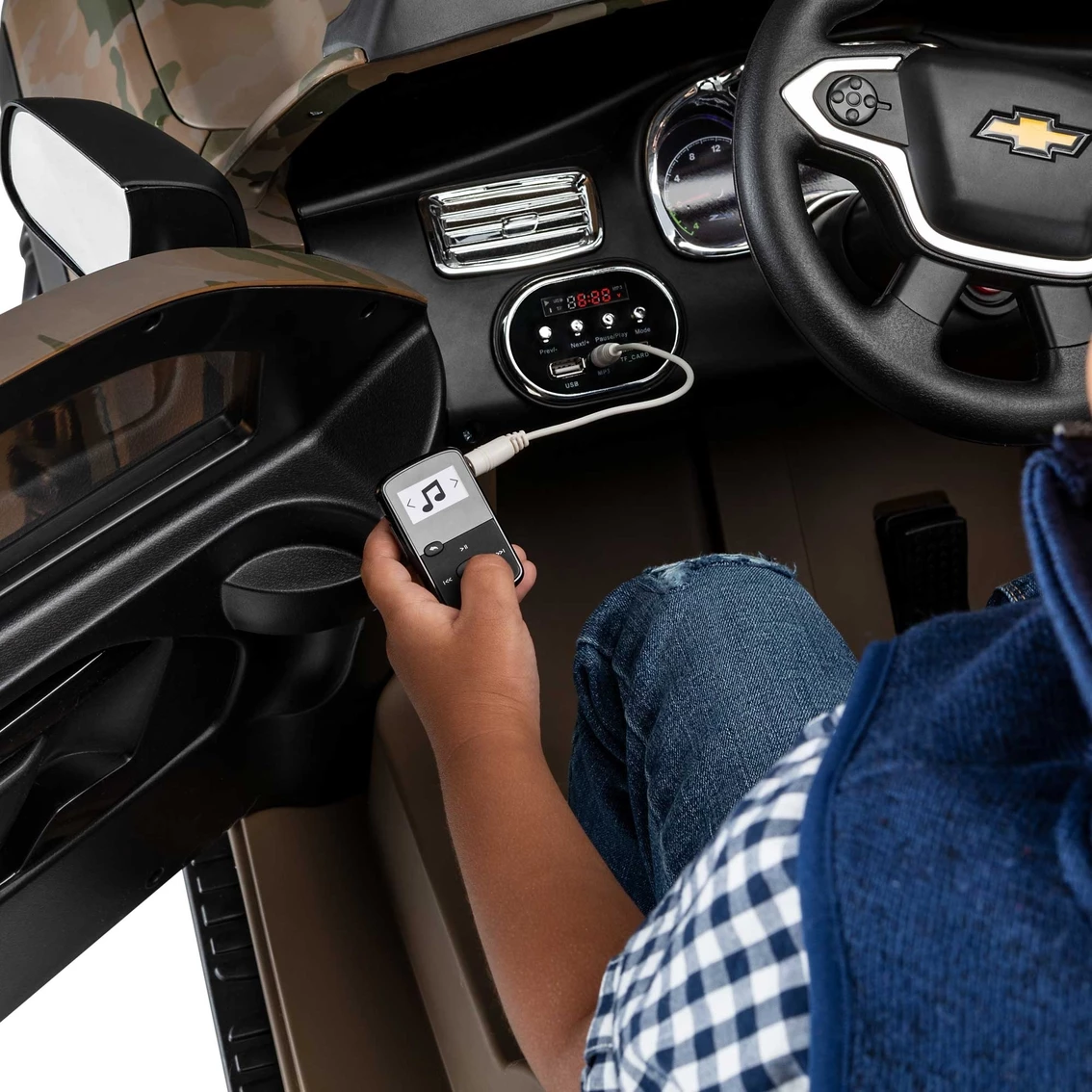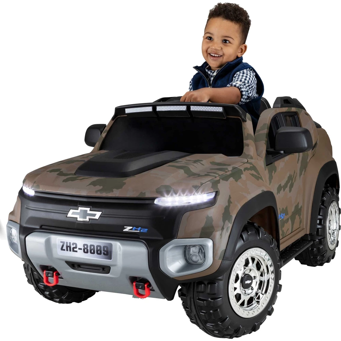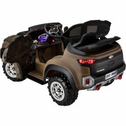 Lead the way with the Chevy Colorado ride-on toy! Part of the Kid Trax Premium Collection, the Chevy Colorado features the bold looks of its full-sized predecessor. This ultra-luxe ride-on toy comes complete with working LED headlights, horn and engine sound effects, two opening doors, trunk storage and vinyl covered seats. Your child can crank up their favorite tunes with the on-board FM radio, USB input, MP3 player input or wireless technology for the ultimate sidewalk road trip experience. Real foot pedal acceleration creates a lifelike driving experience, while a top speed of 2 MPH provides the perfect balance of fun and safety. As a bonus feature, the Chevy Colorado ride-on comes with a Parent Remote Control which provides an easy way to operate the toy vehicle on its own or to just to help your child navigate. Plus, the rechargeable 6-volt battery features Kid Trax’s One Step Direct Connect Charging System for easy, no-fuss charging. Your child can enjoy outdoor fun in style with the Chevy Colorado ride-on toy by Kid Trax. Seats one rider, ages 3-5, with a maximum weight of 77 lb. Model: KT1545.
