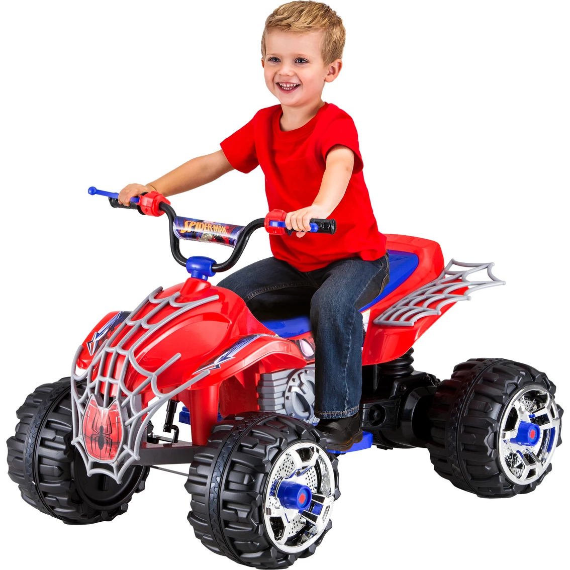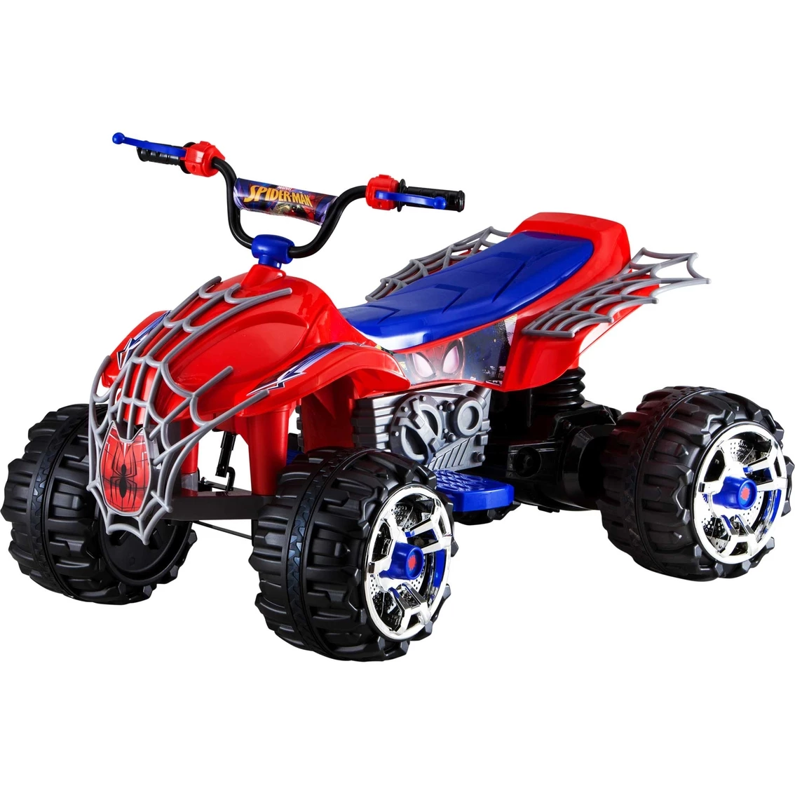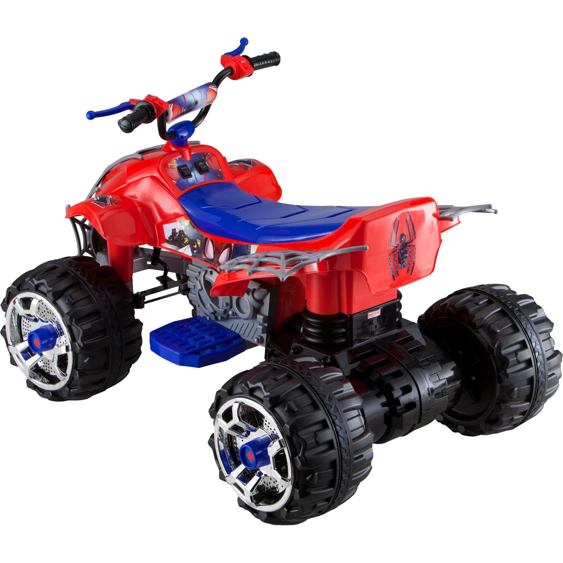 Change from Peter Parker into SpiderMan and thwart Doc Octopus and villains galore on this 12V Marvel’s SpiderMan ATV Ride-on from Kid Trax! This tough battery-powered ‘ATV’ is perfect for catching criminals and saving damsels in distress like Mary Jane. With unique SpiderMan styling full of sweet decals and intricate webs, this set of wheels is sure to have your Spidey Senses tingling. Stopping evildoers is a cinch thanks to the Power Trax rubber traction strip tires, real foot pedal acceleration, forward and reverse driving options (at 2.5 MPH) and a top forward speed of 5 MPH. Since crime doesn’t sleep, there’s an included 12V rechargeable battery and wall charger when you need to refuel. This sweet electric ride-on toy sits one superhero between the ages of 3 and 7 with a maximum rider weight of 95 lb. Don’t let the Green Goblin get away! Stop him in his tracks with the 12V SpiderMan ATV from Kid Trax! Model: KT1301I.