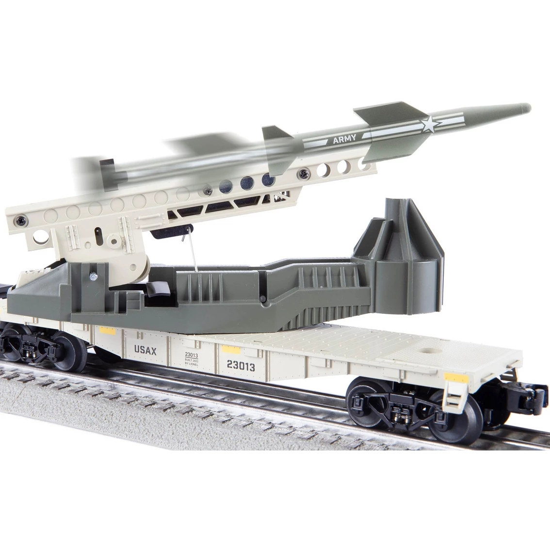 Boots on the ground! It’s time to get this Army train loaded up and off to our soldiers! Lionel’s new Army LionChief train set comes complete with everything you need to get your train up and running and headed out to replenish the base. Run this set with the included remote or using the new Lionel Voice Control feature! Become the Commander by simply speaking a command into your phone via the LionChief App and watch as your Army train follows your lead! This set is also equipped with the new Voice Streaming and Recording feature that gives you the ability to record or live stream your own custom announcements using the LionChief App. Expand your set with the new Army Missile Flatcar and grow your layout with Lionel’s assortment of new Army themed accessories! Your Army base will be stocked up and ready to protect and defend!