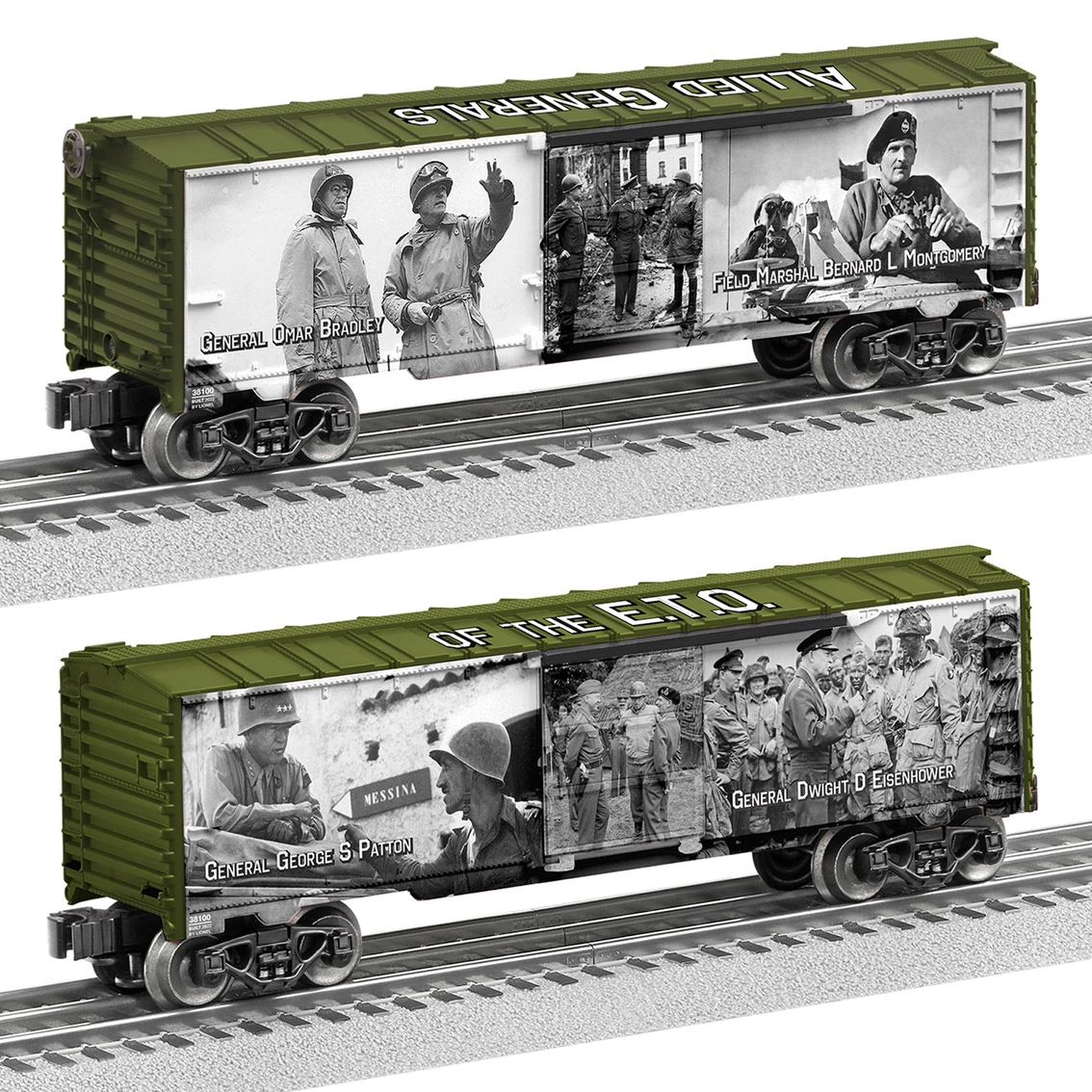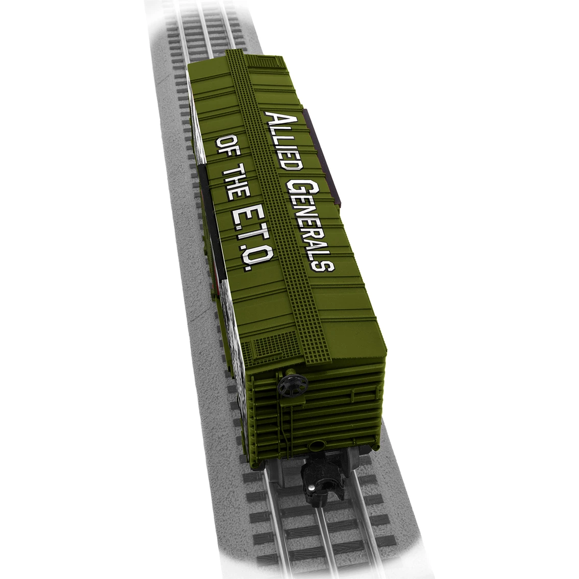 Lionel WWII Generals O Gauge Model Train Boxcar will be a great collector piece for any collection. Boxcar honors the U.S. ARMY European Theater of Operations that include Lieutenant General Omar Bradley, Field Marshall Bernard L. Montgomery, General Dwight D. Eisenhower and Lieutenant General George S. Patton.