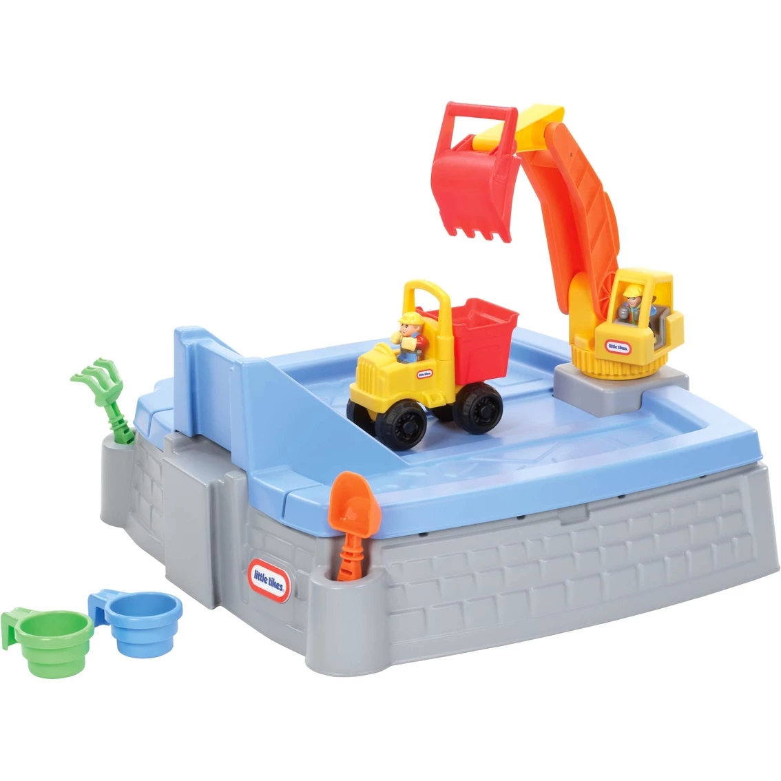 Playing in the sand just got more fun with the fun Little Tikes Big Digger Sandbox. This sandbox has an excavator that really works to pick up sand and load it into any truck. Ramps and roadways are molded into the sand area, and the durable truck ramp doubles as a lid to keep the sand dry during tough outdoor weather. This sturdy sandbox holds up to 100 pounds of sand and is ready to be filled with imagination. Includes 2 characters, sand cup, sand sifter, shovel, rake and dump truck. Model: 624520MP.