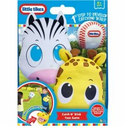 Have a blast with family and friends with the Little Tikes Easy Catch and Stick Toss Game! To play this game, two players simply stand a few feet apart, toss the easy catch soft baseball and try to catch it in their self-stick soft mitts. The ball and mitt are made using a hook and loop system, which ensures a catch every time. The mitts are made from a soft felt material, each one with a fun soft plush animal face that you open the mouth to grip the easy catch soft baseball. This game provides a safe, fun and productive way for children to develop hand-eye coordination and helps improve their balance while throwing the soft ball. This game is so easy and fun, your little tike will be catching a ball like a professional in no time! Ideal for indoor and outdoor use, encourages active play and fun for 2 years and up. Model: G820016965205.