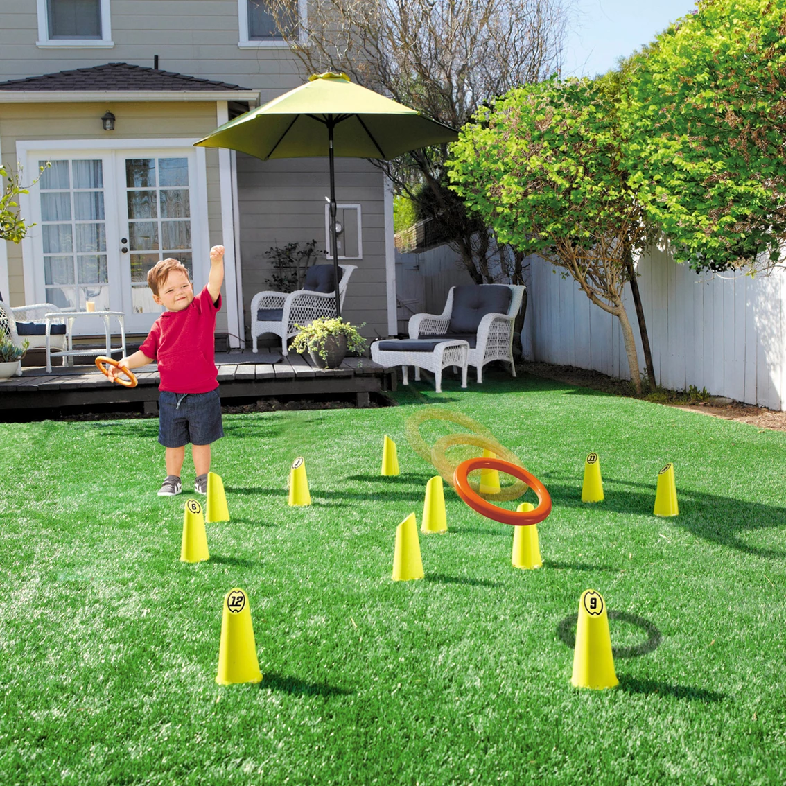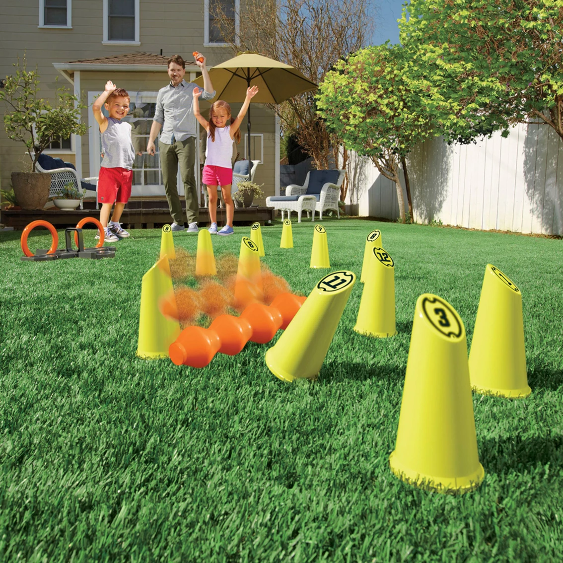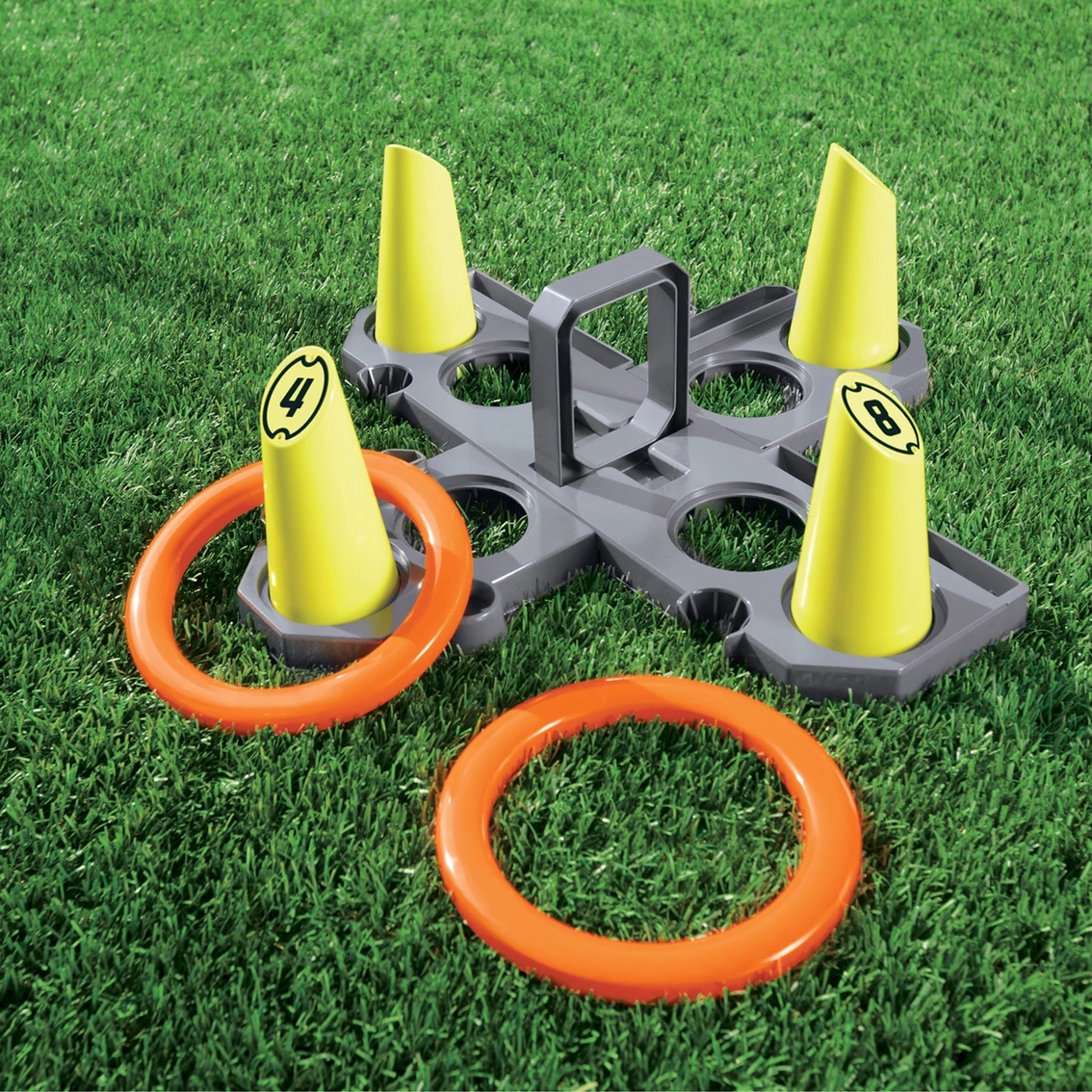Bring home endless hours of fun backyard lawn games with the Little Tikes Hours of Fun 4-in-1 Backyard Games. This backyard game set has four unique lawn games that are fun for the whole family to play. Ring Toss is great for toddlers, Pin Sequence encourages kids to run around the yard and follow directions, Precision Bowling is a fun bowling variant for the whole family, and Capture the Pins is great for groups of eight to play together. Each of the four included games takes roughly 20 minutes to play and is easy to set up again for hours of fun. Bonus: the base for Ring Toss converts into a storage case for easy cleanup and travel. Kickstart a summer of fun with the Hours of Fun 4-in-1 Backyard Games by Little Tikes!