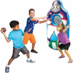 Includes 4 ft. tall jumbo trainer and 3 footballs — fill base with sand or water to balance and have fun!