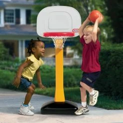 This kid’s basketball set from Little Tikes is the perfect size for toddlers. The oversize rim helps shots go in easier. The smaller basketball is easier to hold and shoot. More buckets mean more smiles! Kids can play cooperatively or competitively. Little Tikes basketball hoops are built with the brand’s legendary quality. Nonadjustable post. Model: 622700MP.