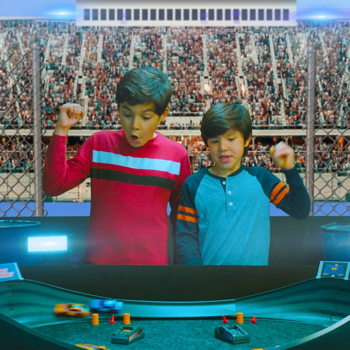 Bring the excitement of Nascar home with the one of a kind short track speedway for hectic, high-velocity racing action. With their patented Blue-Groove track system and triple-wide banking turns, this track was made for insane speed and colossal collisions. You can Race, Wreck and Rebuild! Start your engines by flash-charging vehicles in 10 seconds or less. The hood, doors and roof fly apart upon impact! Cars easily snap back together for continuous racing action. Only Crash Circuit lets you race like a pro! Compatible with other Crash Circuit and Crash Racers track sets and vehicles.