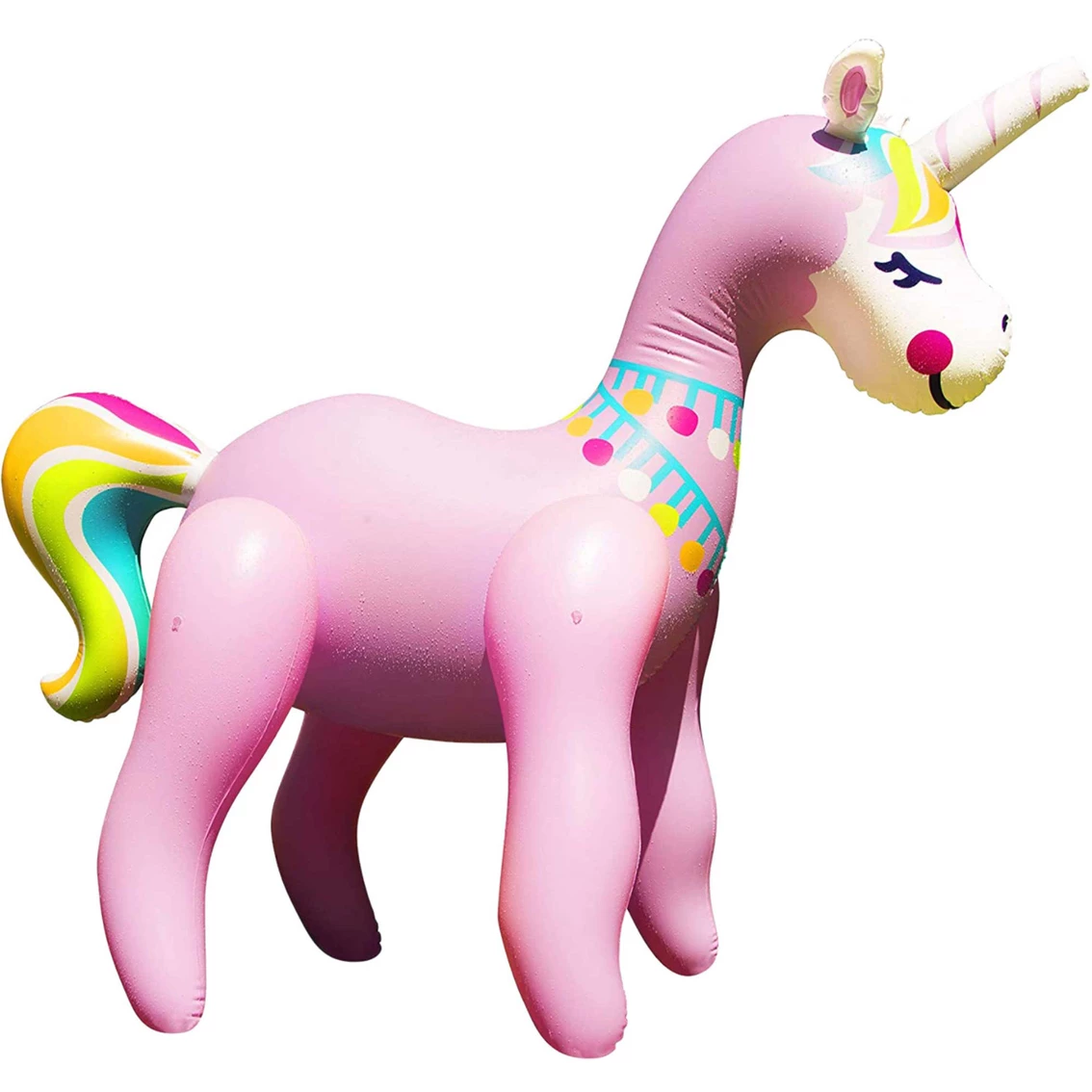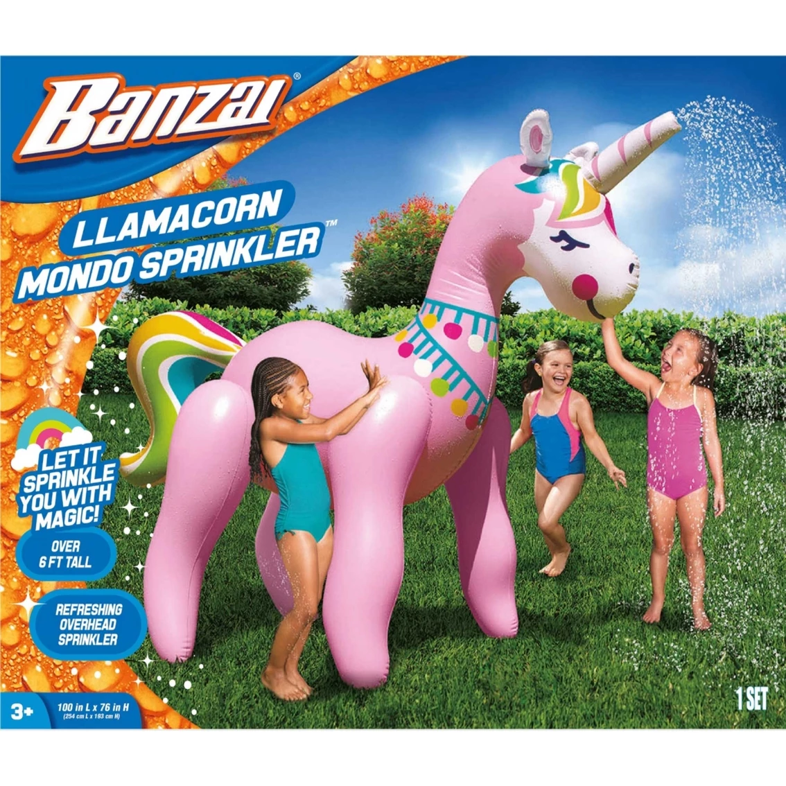 Gather around the Llamacorn! Is it a llama? Is it a Unicorn? Get ready for big refreshing fun with the Llamacorn Mondo Sprinkler. At over 6 ft. tall, this bigger-than-life mystical backyard creature will sprinkle you with magic all summer long! Attaches to any garden hose. Pet it for good luck! Durable PVC construction. Model: G191124909055.